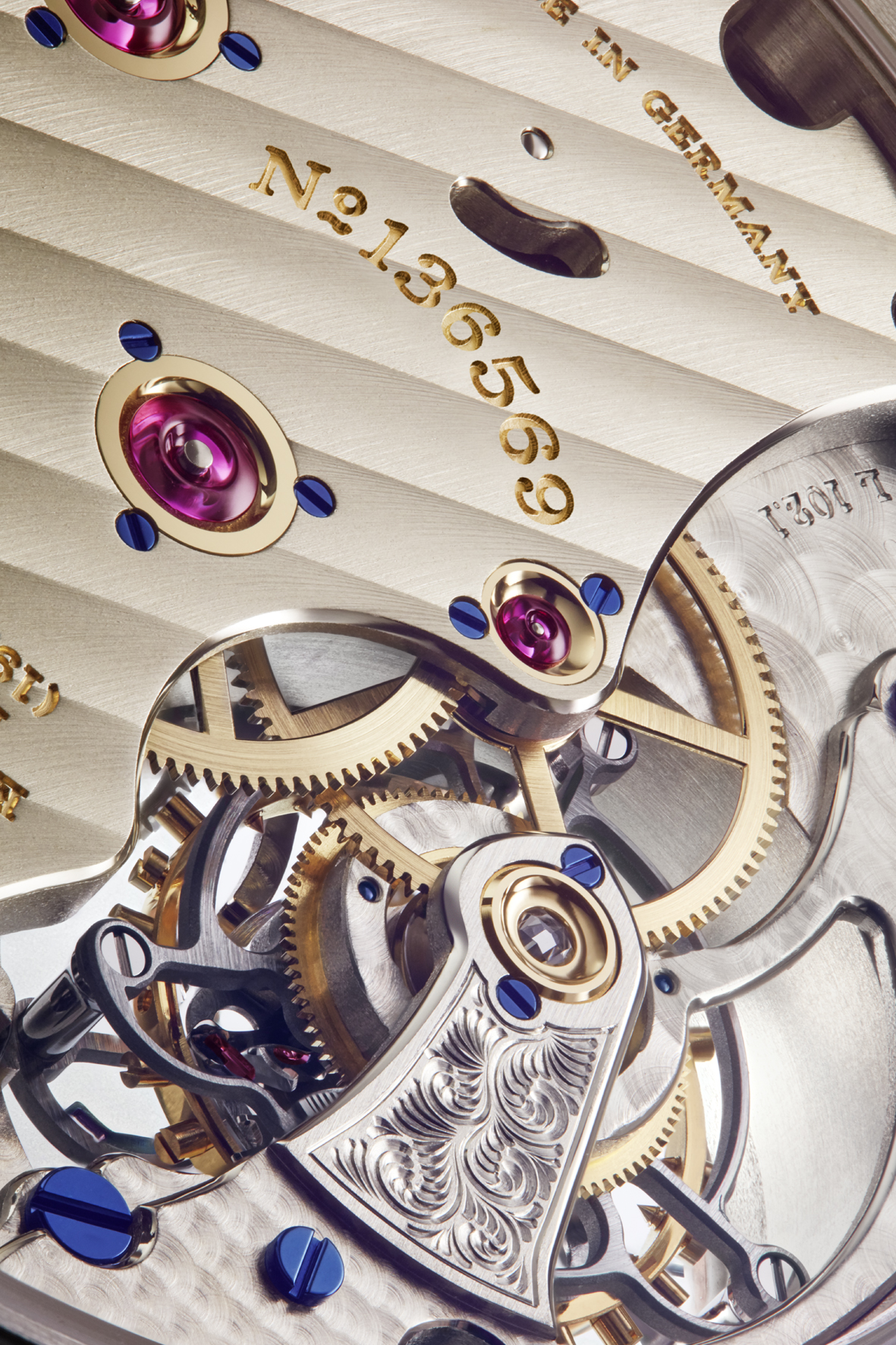 La cassa in platino di 39,5mm numerata da 001/100 è la cornice ideale per il quadrante smaltato, la cui realizzazione richiede circa 30 fasi di lavoro artigianale. La ricerca dell’autenticità storica si riflette nei dettagli, come ad esempio la cifra 12 cotta a parte e stampata in rosso. La lancetta in acciaio brunito, le cifre arabe, la minuteria «chemin de fer» completano il classico design che fa da ponte tra i leggendari orologi da tasca Lange del XIX e del XX secolo. Il 1815 Tourbillon è dotato di un cinturino cucito a mano in pelle di alligatore nera e da una fibbia deployante in platino. (Prezzo €.198.000)