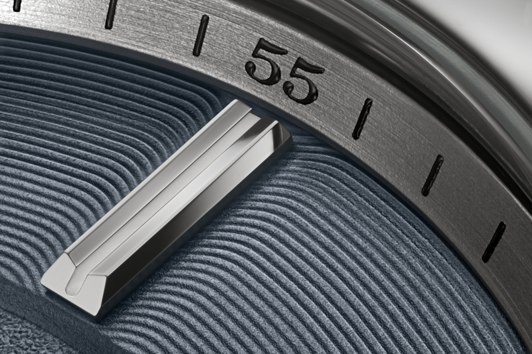 Come le altre varianti della famiglia ODYSSEUS, anche l’edizione in titanio, limitata a 250 esemplari, è dotata di un quadrante a più livelli. Oltre al nuovo colore blu ghiaccio, presenta una struttura della superficie unica, che spicca in particolare nella decorazione dell’anello delle ore. Le sottili scanalature guilloché si prolungano in delicati archi fino agli indici delle ore che sembrano in tal modo incastonati. Ciò aumenta l’effetto tridimensionale e al tempo stesso diventa una firma esclusiva.