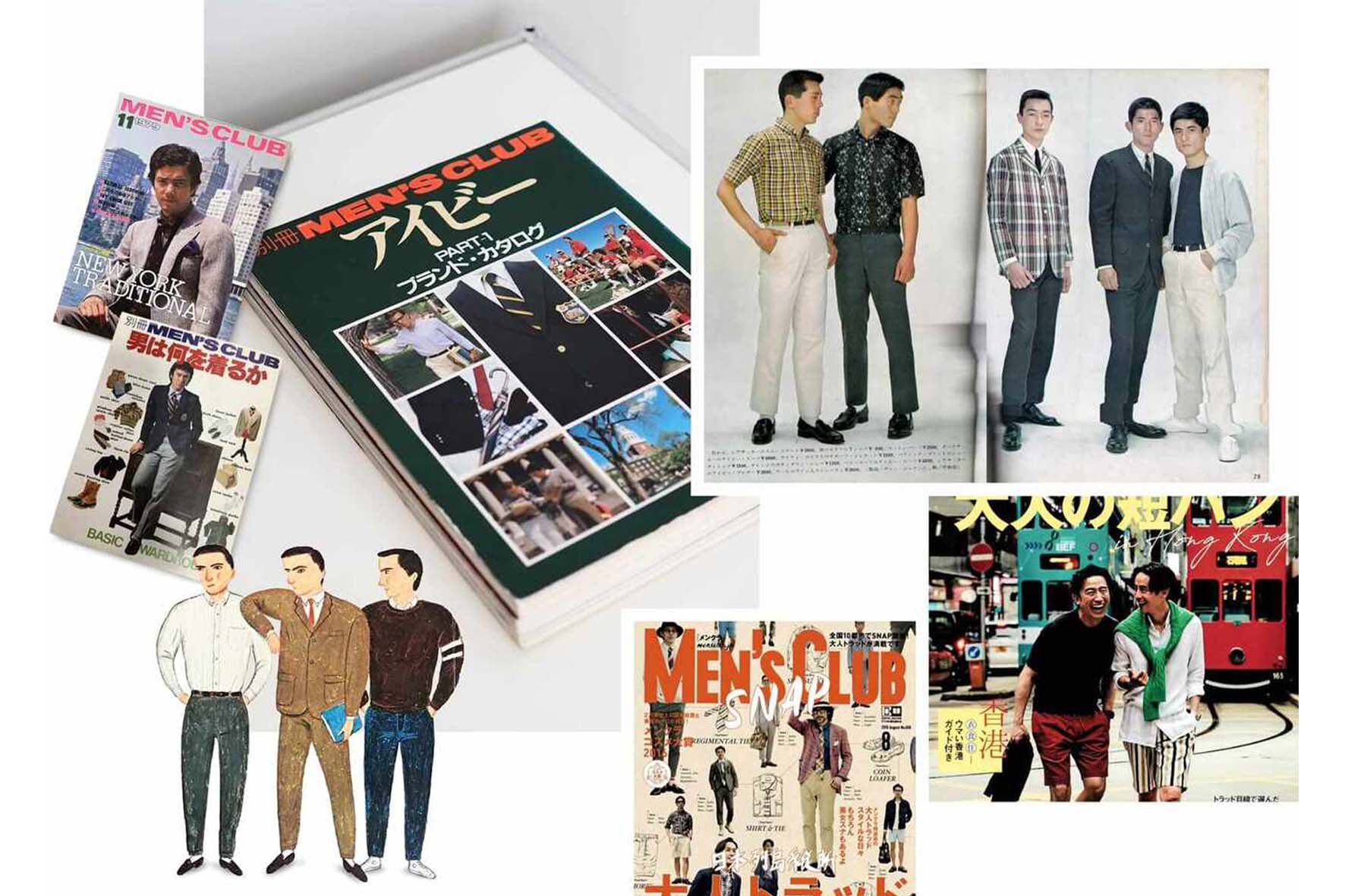 Accanto a Take Ivy, anche la rivista giapponese Men’s Club contribuì a diffondere questo immaginario spiegando nei minimi dettagli le regole dello stile Ivy: la lunghezza corretta dei pantaloni, la struttura del blazer, la larghezza delle cravatte. Vestirsi diventava quasi un esercizio di studio, una disciplina fatta di osservazione e conoscenza.