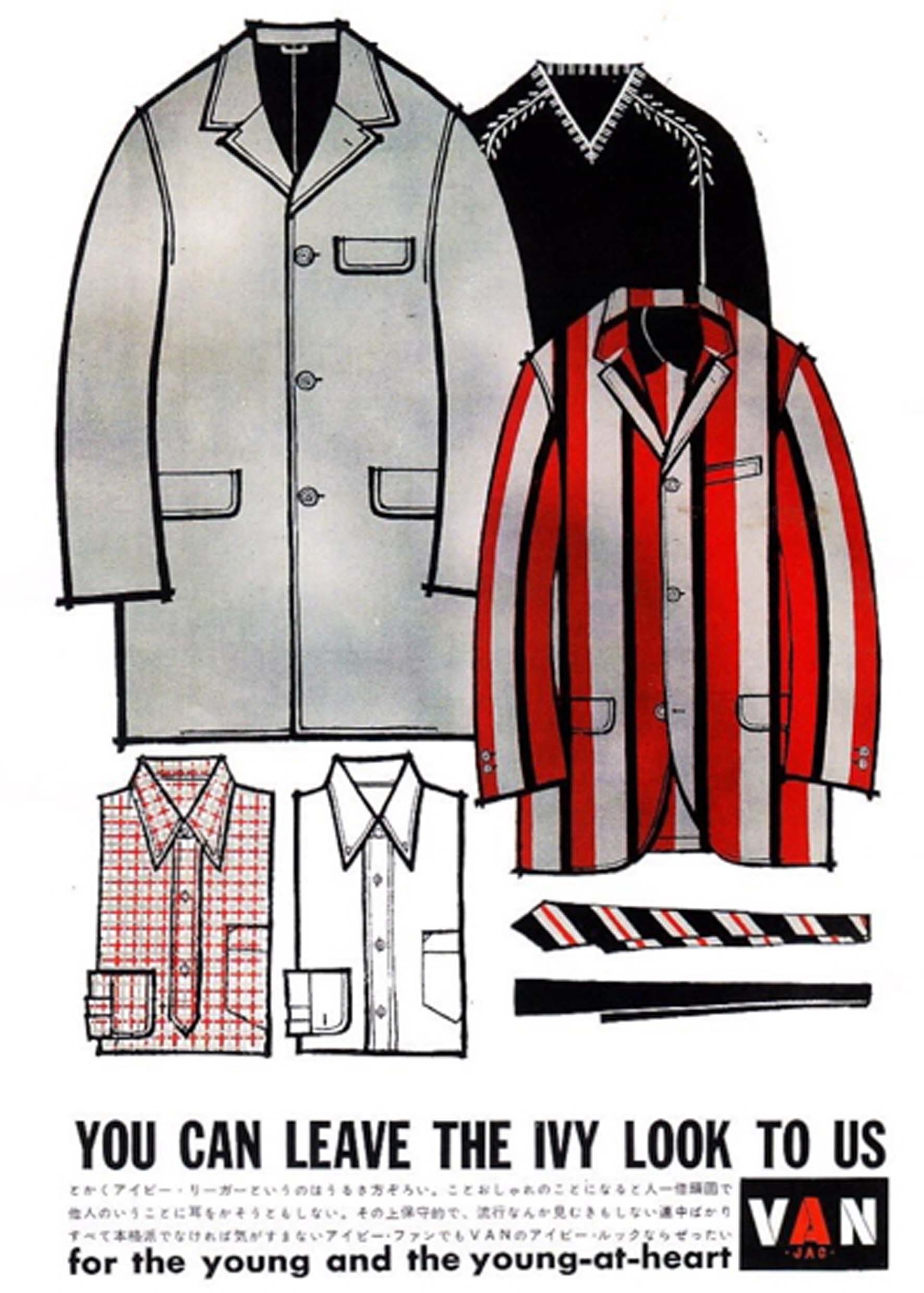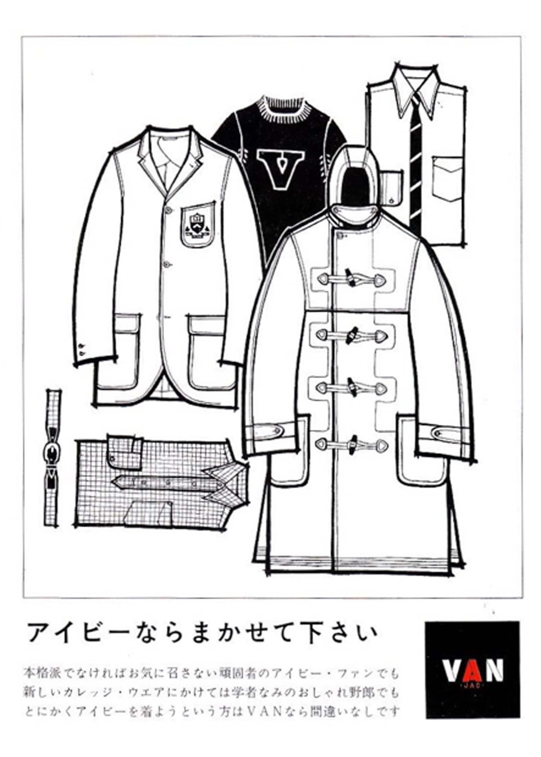 In questo contesto emerse la figura di Kensuke Ishizu, fondatore del marchio Van Jacket. Affascinato dall’eleganza informale degli studenti americani, Ishizu visitò gli Stati Uniti e i campus della Ivy League, decidendo poi di importare quello stile in Giappone come simbolo di modernità. Il marchio VAN Jacket dominò la scena della moda giapponese tra gli anni Sessanta e Settanta e contribuì in modo decisivo alla diffusione dello stile Ivy tra i giovani di Tokyo.