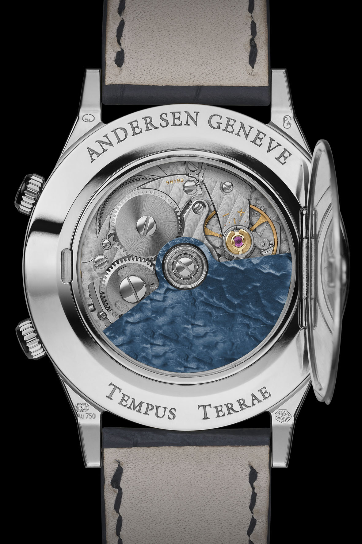 La seconda, la terza e la quarta edizione successive dei world timer furono Christophorus Colombus, Mundus e, nel 2004, 1884. Nel 2015 fu la volta del Tempus Terrae, ispirato all’orologio con due corone sviluppato da Cottier negli anni ’50; quel pezzo celebrava i 25 anni (1990-2015) dei world timer di ANDERSEN Genève ed era in edizione limitata di 25 esemplari in oro giallo, 25 in oro rosso e 25 in oro bianco. I collezionisti potevano scegliere di avere una incisione speciale sul coperchio posteriore dell’orologio, rendendolo unico. Un concetto di personalizzazione molto caro alla maison, sul quale torneremo più avanti.