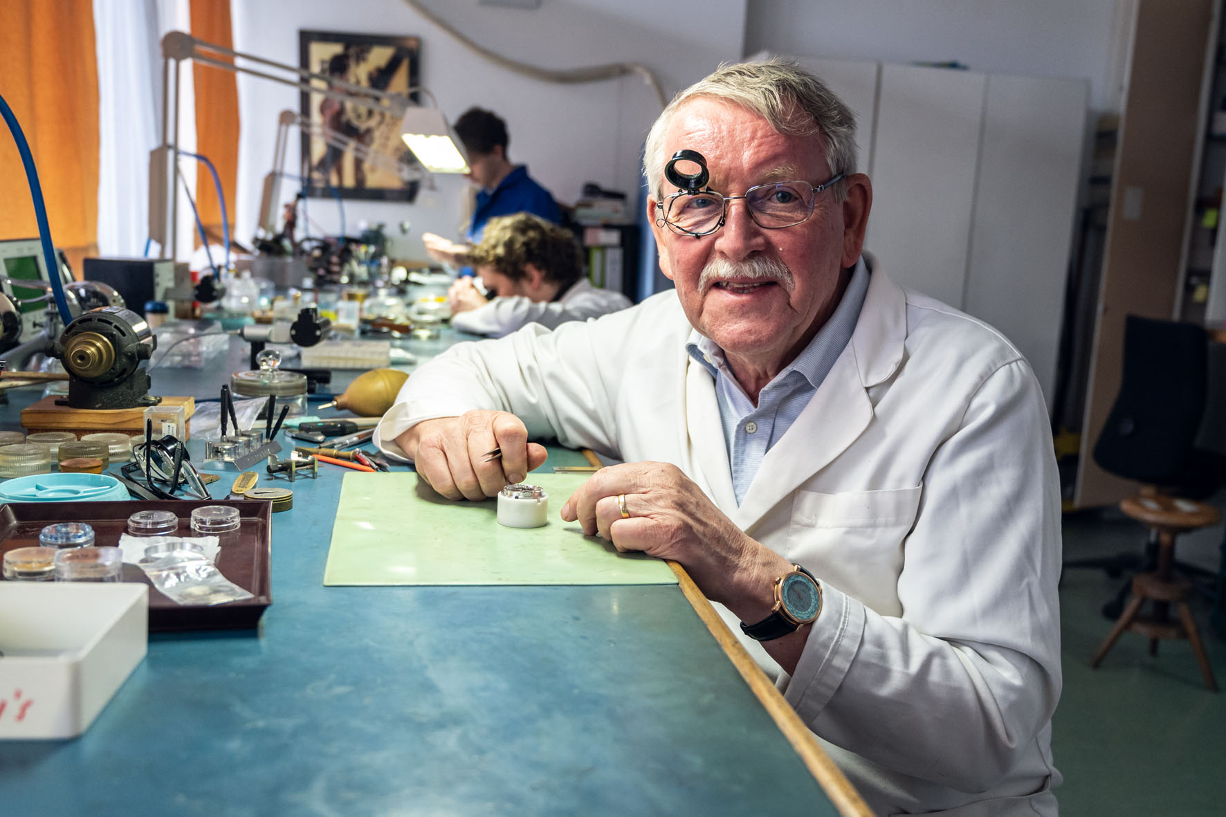 Svend 82 anni il prossimo luglio, è ancora attivo nell’Atelier, ma a tempo parziale. Tuttavia, dal 2015, Pierre-Alexandre Aeschlimann e un team di brillanti orologiai sviluppano e producono gli orologi. Naturalmente, non mancano di mostrare e consultarlo su tutte le creazioni.