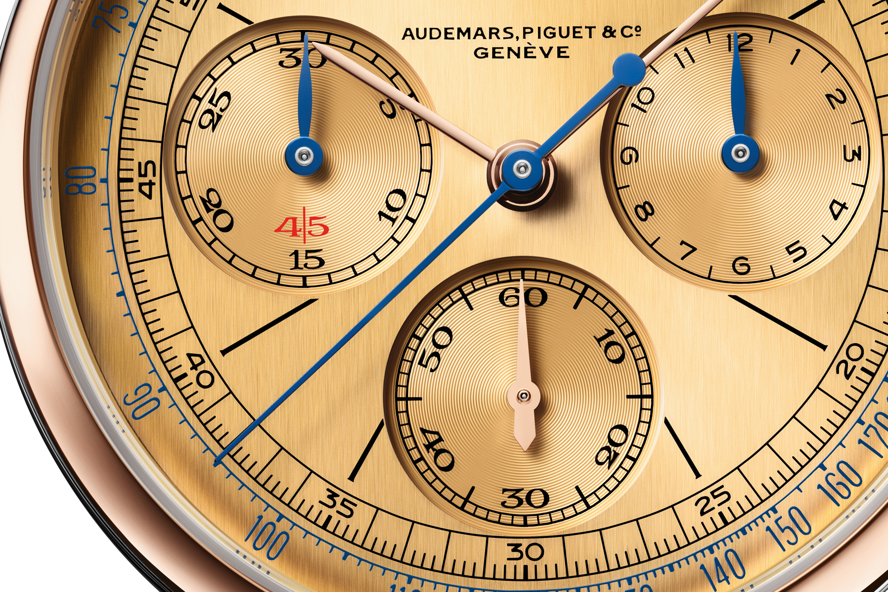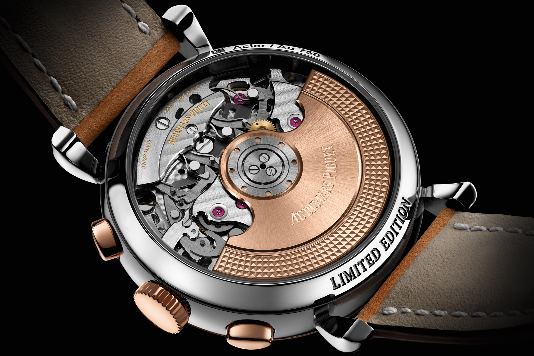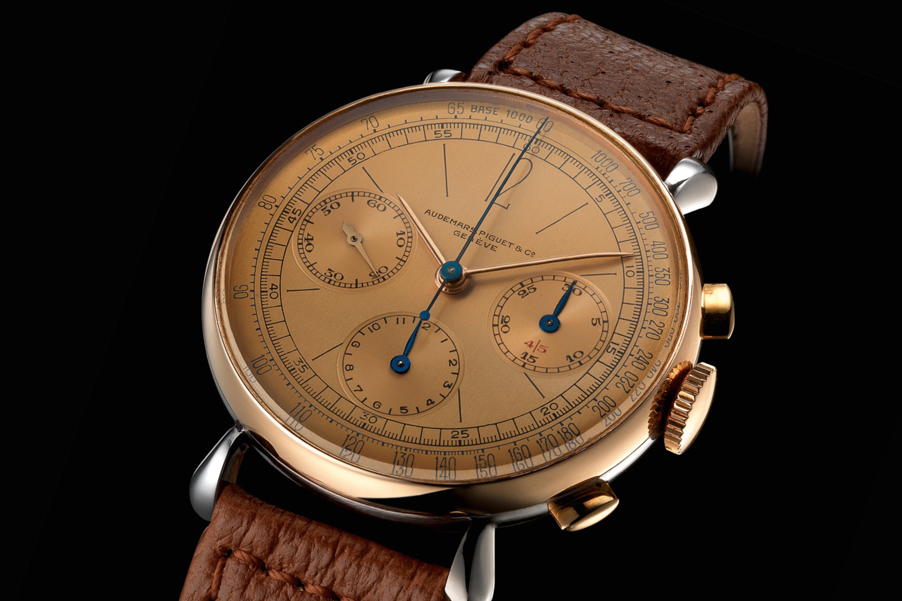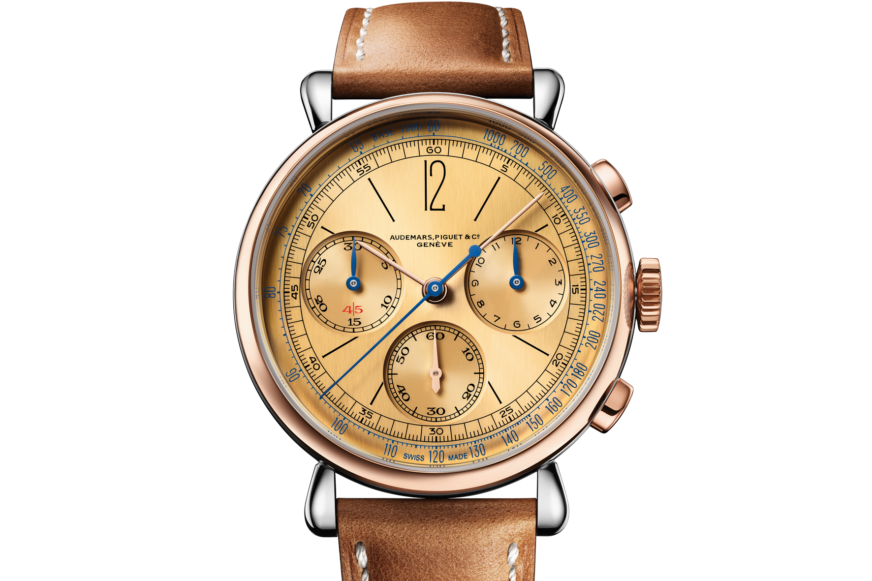 Ogni orologio Audemars Piguet venne prodotto come esemplare unico fino al 1951. I cronografi da polso vintage della Manifattura sono tra gli orologi più rari che esistano al mondo con soli 307 esemplari prodotti tra gli anni ’30 e la fine degli anni ’50. Questo primo progetto di reinterpretazione del passato ha portato la Maison a un’edizione limitata di 500 esemplari che evoca le caratteristiche di design del cronografo da polso originale del 1943, con la sua cassa in oro rosa e acciaio, impreziosita da un quadrante color champagne.