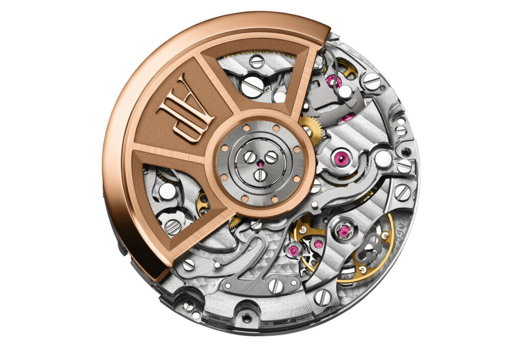 Il fondello in vetro zaffiro in titanio permette di ammirare il funzionamento della ruota a colonne del cronografo: quando viene attivato il pulsante di azzeramento, i martelli, diretti da una leva, colpiscono la camma centrale per azzerare le ruote e le lancette del cronografo. Chi lo indossa può anche ammirare la massa oscillante in oro rosa 22 carati con l’incisione delle iniziali AP, che riprende le versioni storiche del Royal Oak Offshore. Il movimento presenta inoltre finiture: Côtes de Genève, perlatura, satinatura circolare e smussature lucide. (Prezzo €. 84,700)