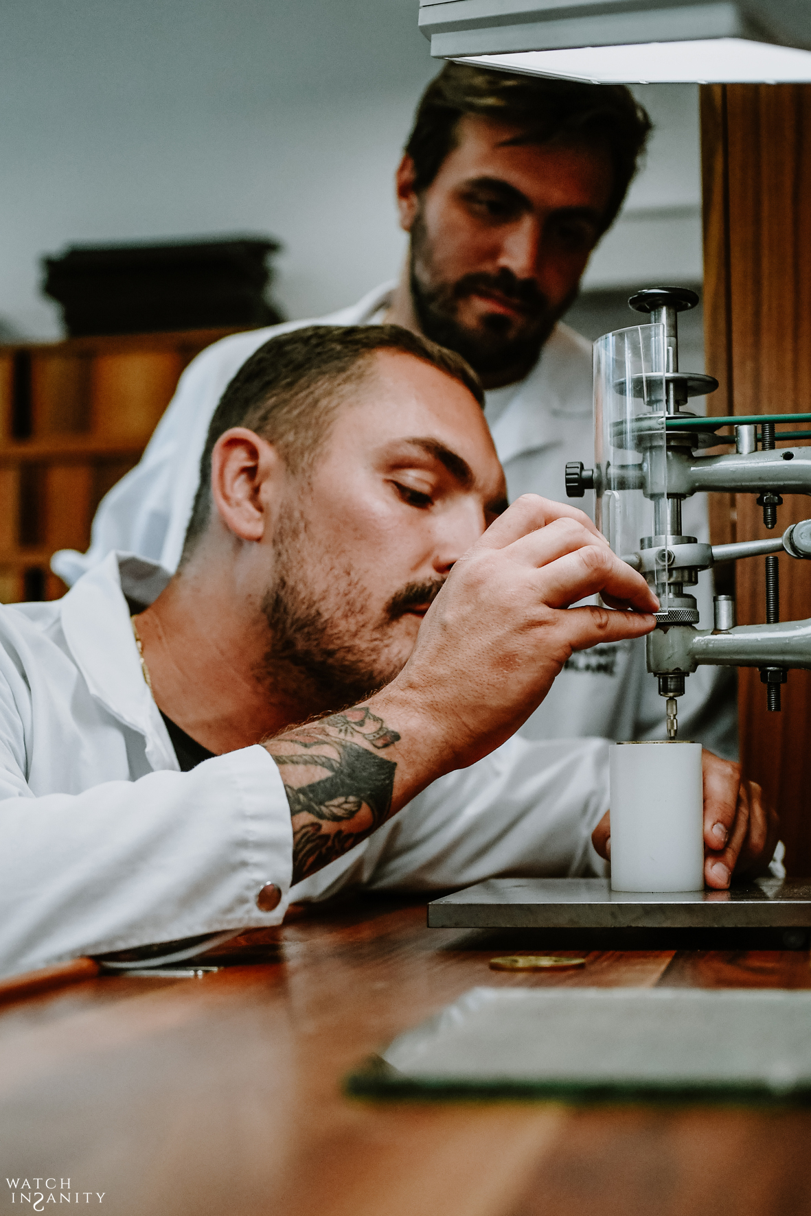 Scesi dalla sella delle nostre BMW, è iniziata la visita alla manifattura. Abbiamo potuto vedere dal vivo vecchi e nuovi macchinari e tutte le fasi di lavorazione di un movimento: dal concept allo sviluppo del prodotto, dall’assemblaggio alla rifinitura. Ogni singolo movimento viene realizzato da un solo orologiaio, dall’inizio alla fine del processo produttivo comprese alcune delle decorazioni come il Poli Noire.