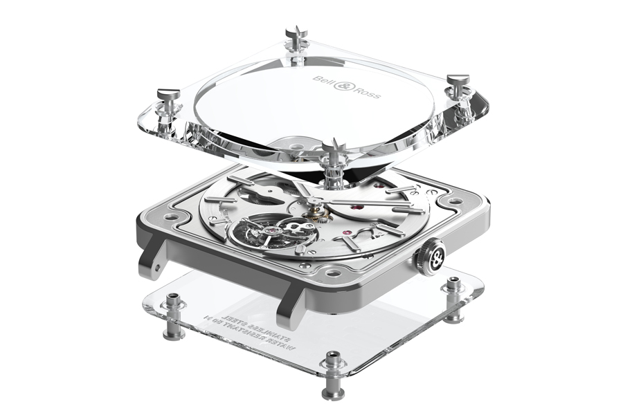 Ed è proprio quello che ha fatto Bell&Ross progettando il nuovo BR-X2, dove cassa e movimento sono un tutt’uno. Come? Immaginando una cassa in acciaio e zaffiro, Bruno Belamich, direttore creativo del brand, è riuscito a trasformare in realtà un’idea utopistica: “Fondere cassa e movimento in un unico elemento per far scomparire la cassa e lasciare apparire il solo movimento”