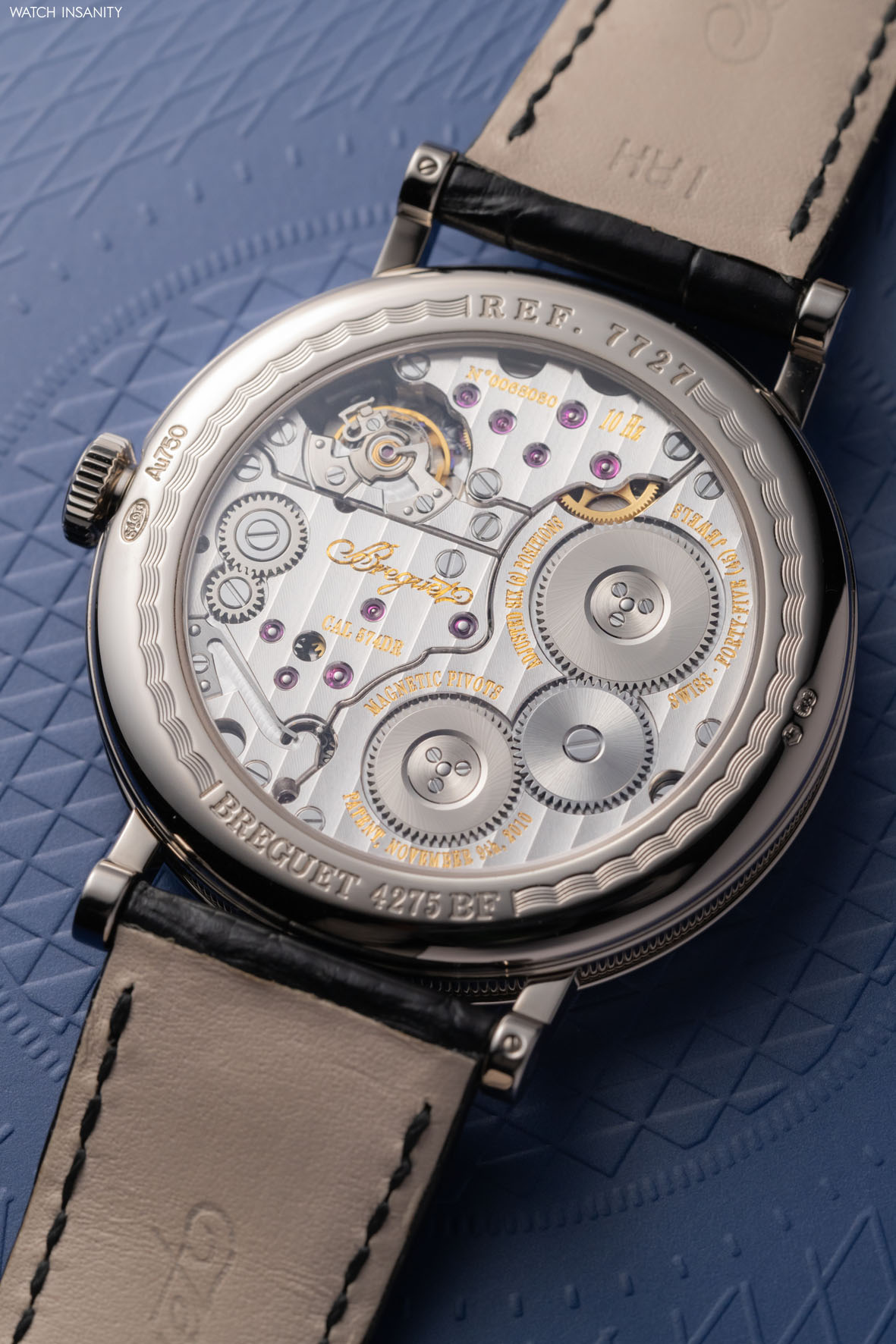 Oltre a questi dettagli di alta tecnologia, l’orologio beneficia anche della particolare perizia di Breguet nell’uso del silicio per le componenti più soggette ai rischi di magnetizzazione. Il Classique Chronométrie 7727 è infatti dotato di una doppia spirale, di un’àncora e di una ruota di scappamento in silicio create appositamente per il suo movimento, che contribuiscono anch’esse a ottenere una precisione ottimale.