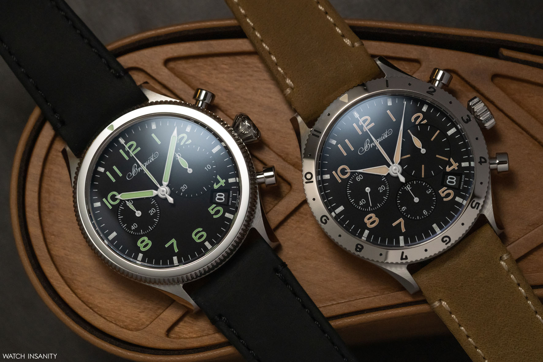 Il look vintage di entrambi gli orologi è completato dai cinturini. In pelle di vitello nera quello del Type 20, in pelle di vitello beige quello del Type XX. Insieme a essi, ciascun orologio ha anche un NATO nero in tessuto. L’intercambiabilità è facilitata da un sistema di sgancio rapido ingegnoso.