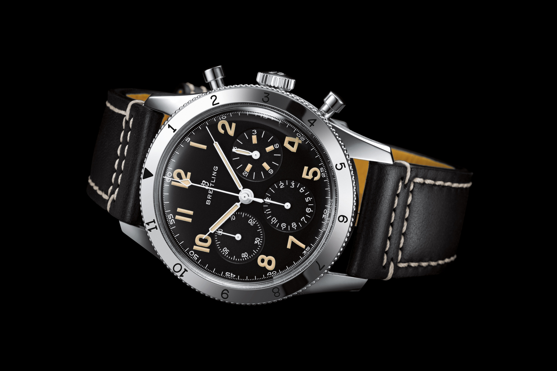 Il nuovo Breitling AVI Ref. 765 1953 Re-Edition è abbinato ad un cinturino in pelle nera con fibbia ad ardiglione ed ha una garanzia di 5 anni. (Prezzo CHF 7.900)