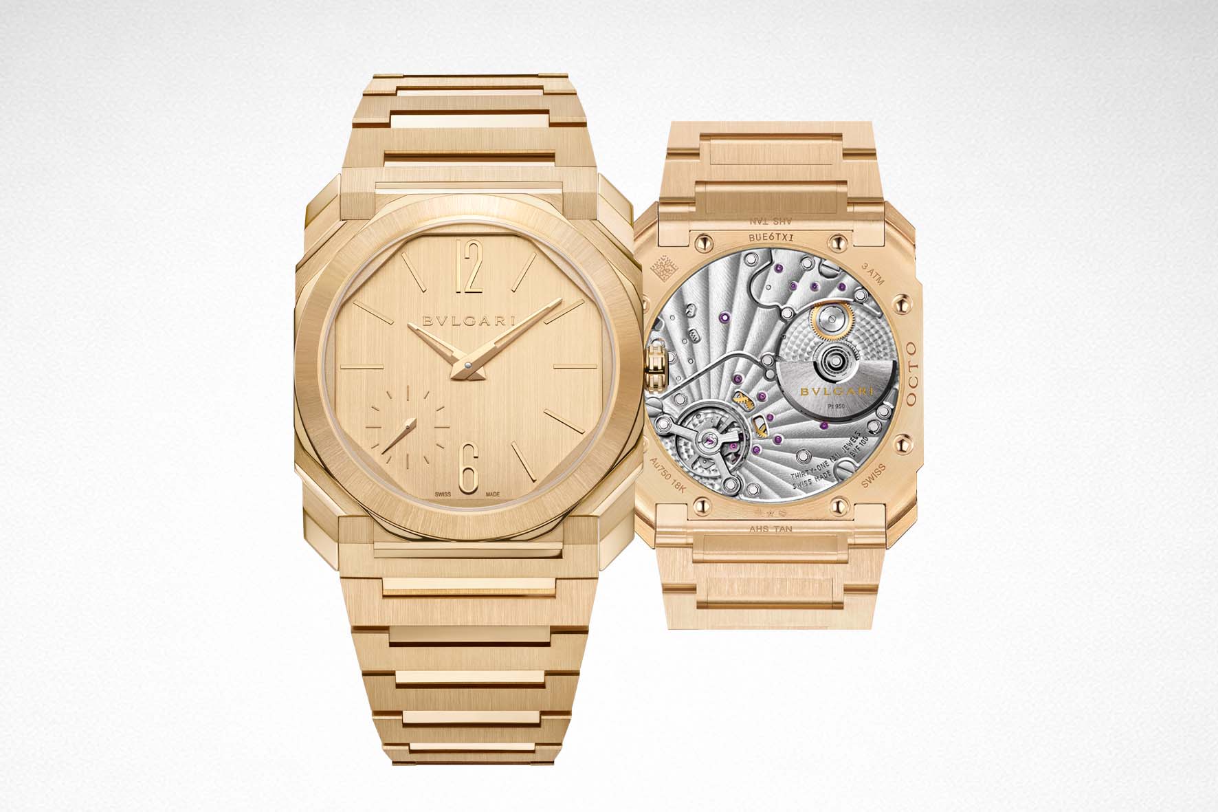 Nel 2019, la stessa logica si estende al Chronograph GMT Automatic, calibro BVL 318 da 3,30 mm e cassa di 6,90 mm, che ridefinisce i parametri per i cronografi automatici con funzione GMT. Con il Perpetual Calendar del 2021, Bulgari raggiunge uno dei risultati più complessi: con calibro BVL 305 spesso 2,75 mm e cassa di 5,80 mm questo modello raggiunge il record del calendario perpetuo più sottile al mondo ed è premiato con Aiguille d’Or al Grand Prix d’Horlogerie de Genève. La sequenza culmina nel 2022 con l’Octo Finissimo Ultra, dove movimento e cassa coincidono in uno spessore di soli 1,80 mm, con il fondello integrato nella struttura meccanica. Nel 2024, una versione Ultra certificata COSC porta questo limite a 1,70 mm, stabilendo il record per l’orologio da polso più sottile mai realizzato.