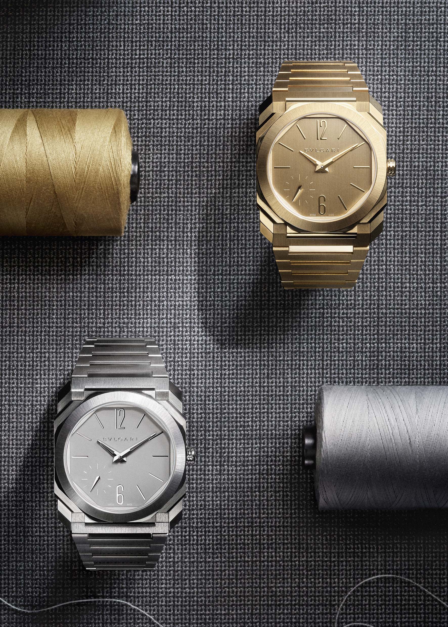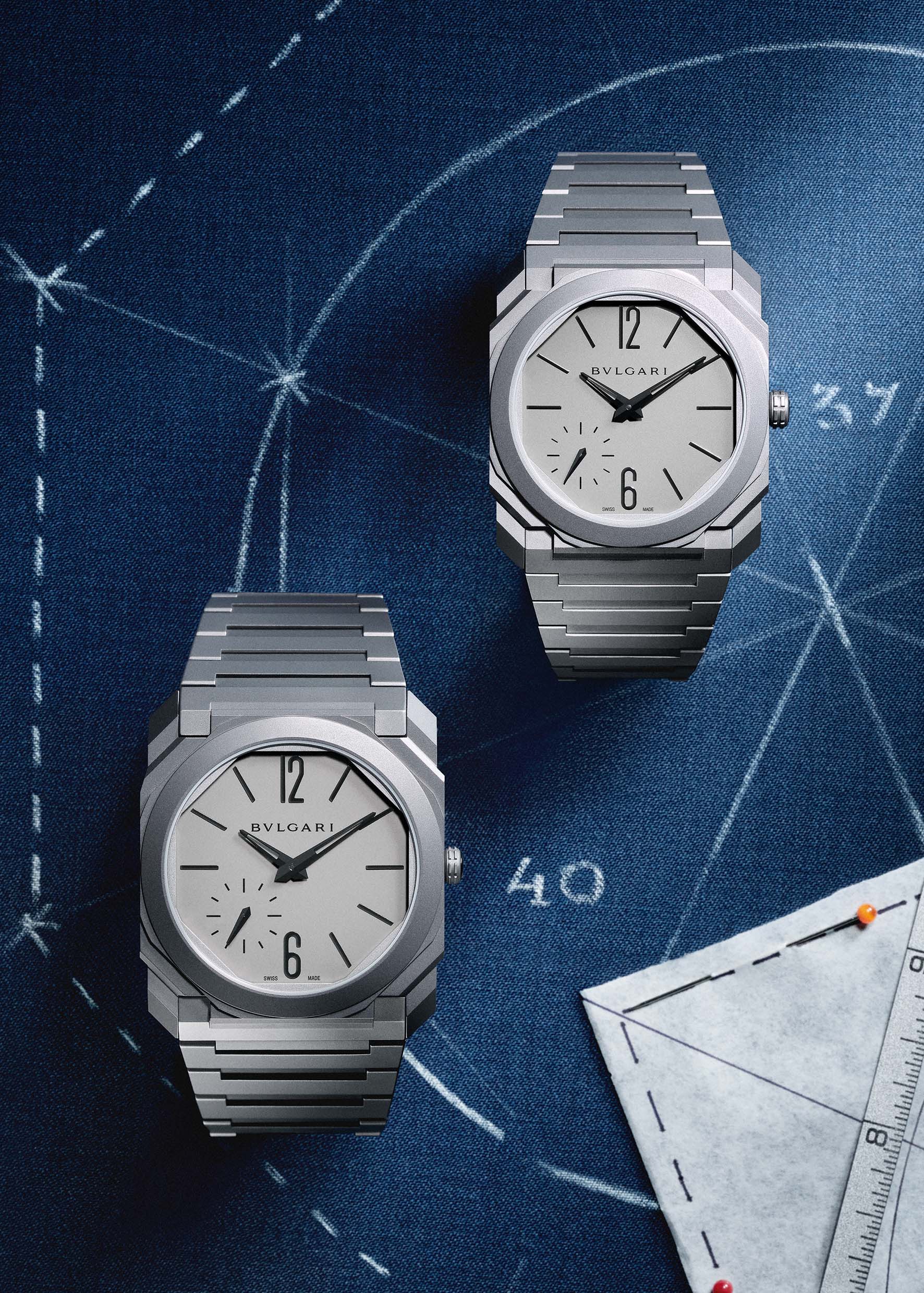 Rispetto alla versione da 40 mm, che negli anni ha incarnato l’espressione più radicale della ricerca sulla sottigliezza e sulla performance tecnica, il nuovo Octo Finissimo 37 mm introduce una lettura più versatile, mantenendo intatti i codici formali della collezione. Le proporzioni vengono ripensate, il rapporto con il polso si fa più armonico e l’orologio assume una dimensione più lifestyle. La collezione si articola in quattro varianti, declinate in titanio e oro, ciascuna con una propria interpretazione di materiali e finiture.