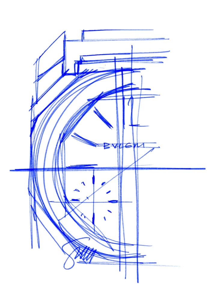 All’interno del salone ginevrino, Bulgari ha saputo costruire uno spazio che richiama la propria identità italiana attraverso un uso controllato di materiali, proporzioni e riferimenti architettonici. Un linguaggio che si riflette direttamente anche negli orologi, dove volumi e superfici diventano elementi centrali nella costruzione.