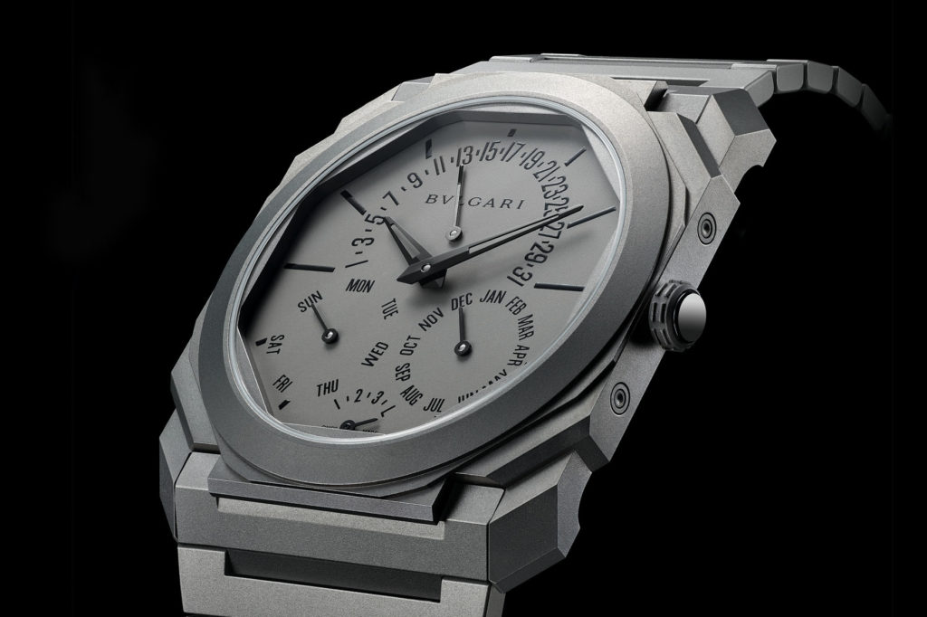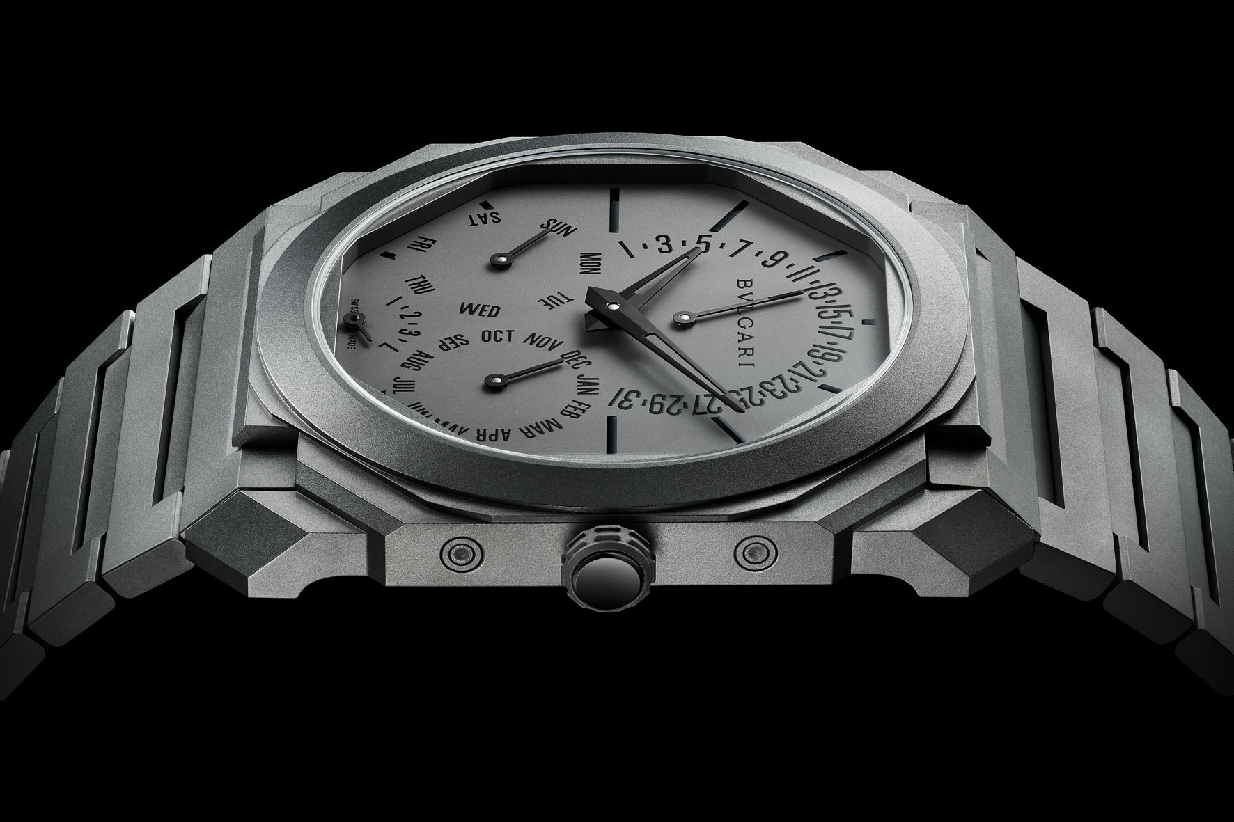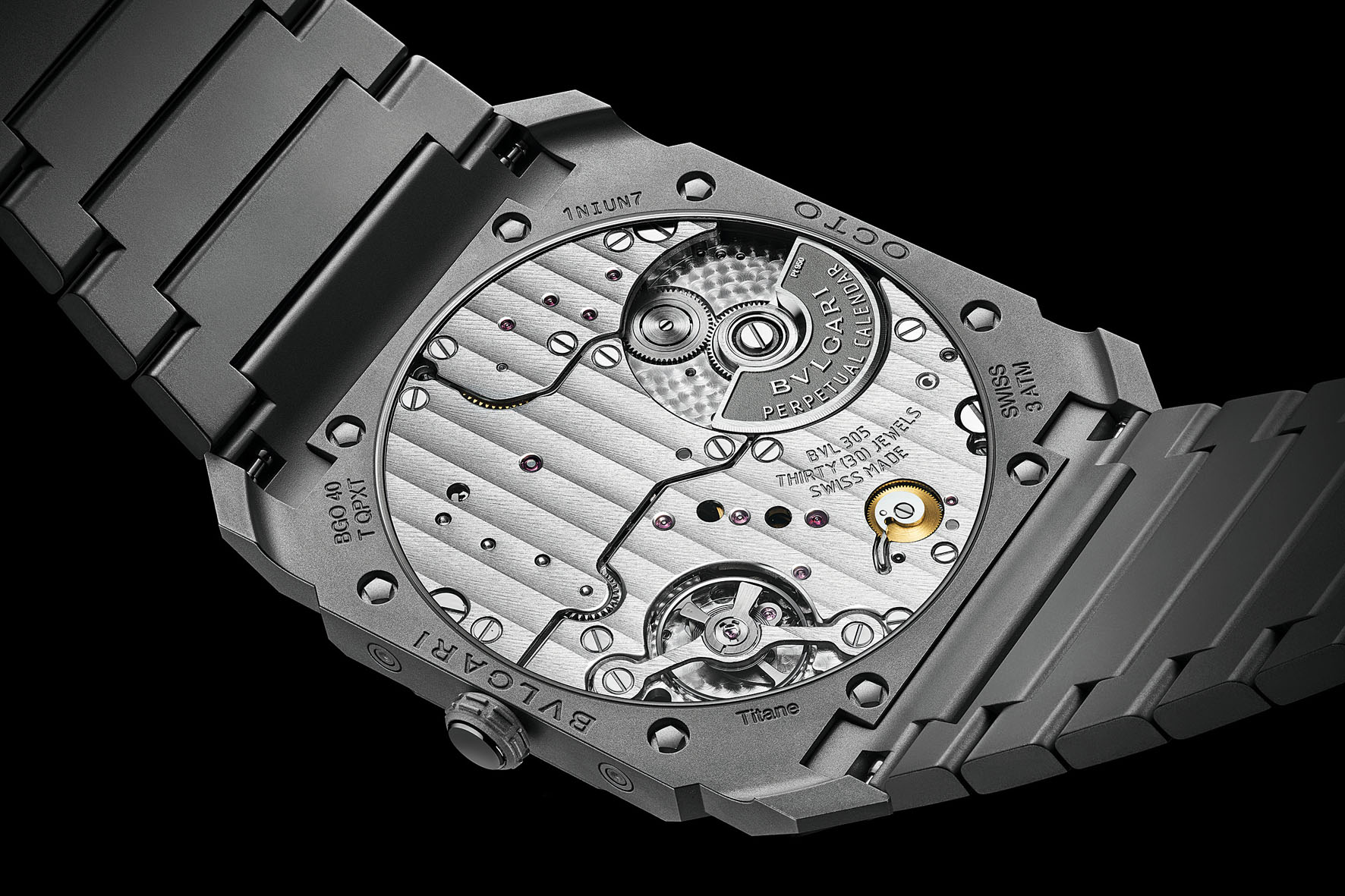 Il risultato? Niente di meno che 408 componenti perfettamente assemblati all’interno dello spazio estremamente ridotto della cassa di soli 5.80 mm di spessore di Octo Finissimo Perpetual Calendar.