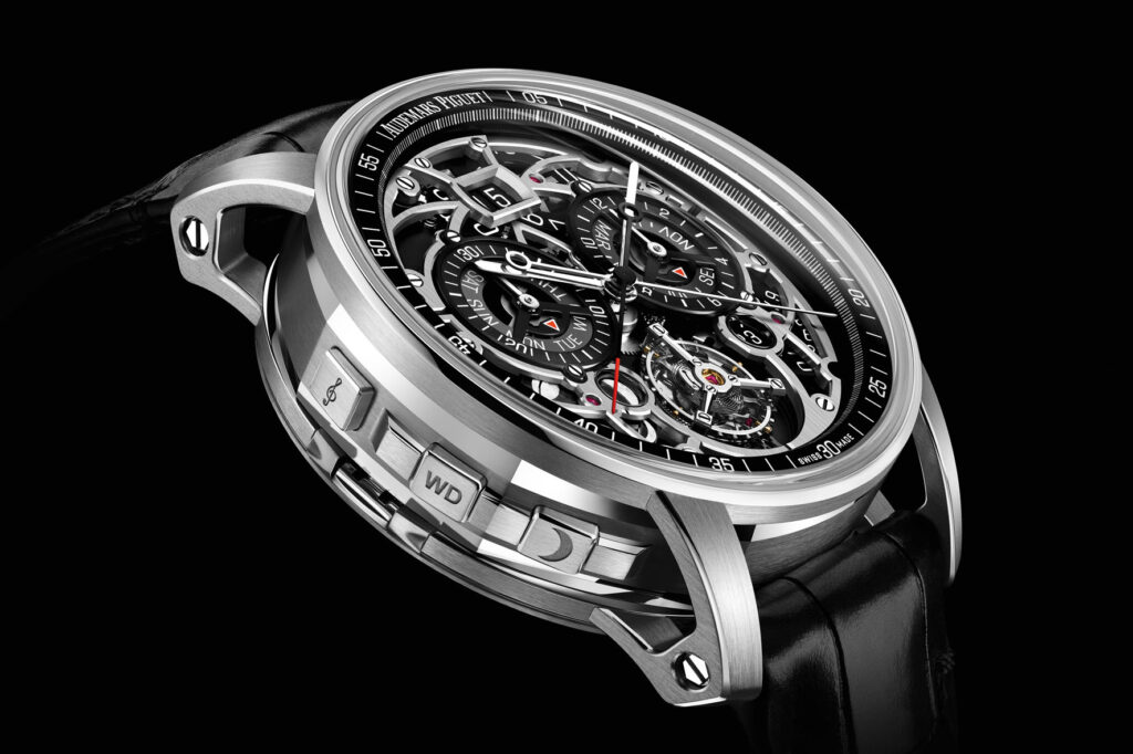 Code 11.59 by Audemars Piguet Ultra-Complication Universelle, noto anche come RD#4, rappresenta l’ultima novità in termini di meccanismo con suoneria, poiché combina la sofisticata Grande Sonnerie con la tecnologia brevettata Supersonnerie, introdotta da Audemars Piguet nel 2015.