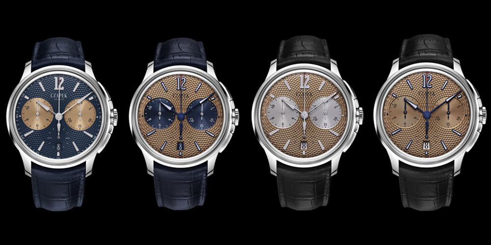 “Il risultato è stato così sorprendente e bello che abbiamo deciso di replicare l’idea nella nostra linea di cronografi, che ha un design contemporaneo e un tocco vintage dato dalla glass-box in vetro zaffiro”, ha spiegato Xavier de Roquemaurel, CEO di Czapek. “Abbiamo deciso di esplorare anche altre combinazioni ed introdotto altri due quadranti con colori contrastanti, ovvero salmone e argento e salmone con lancette e indici azzurrati“.