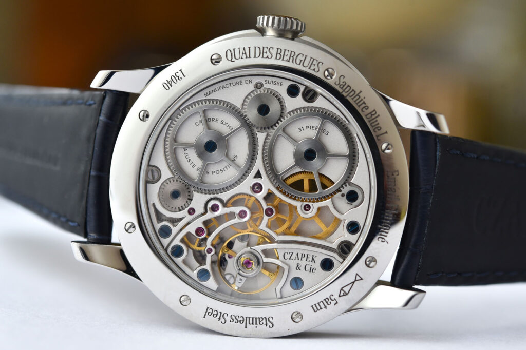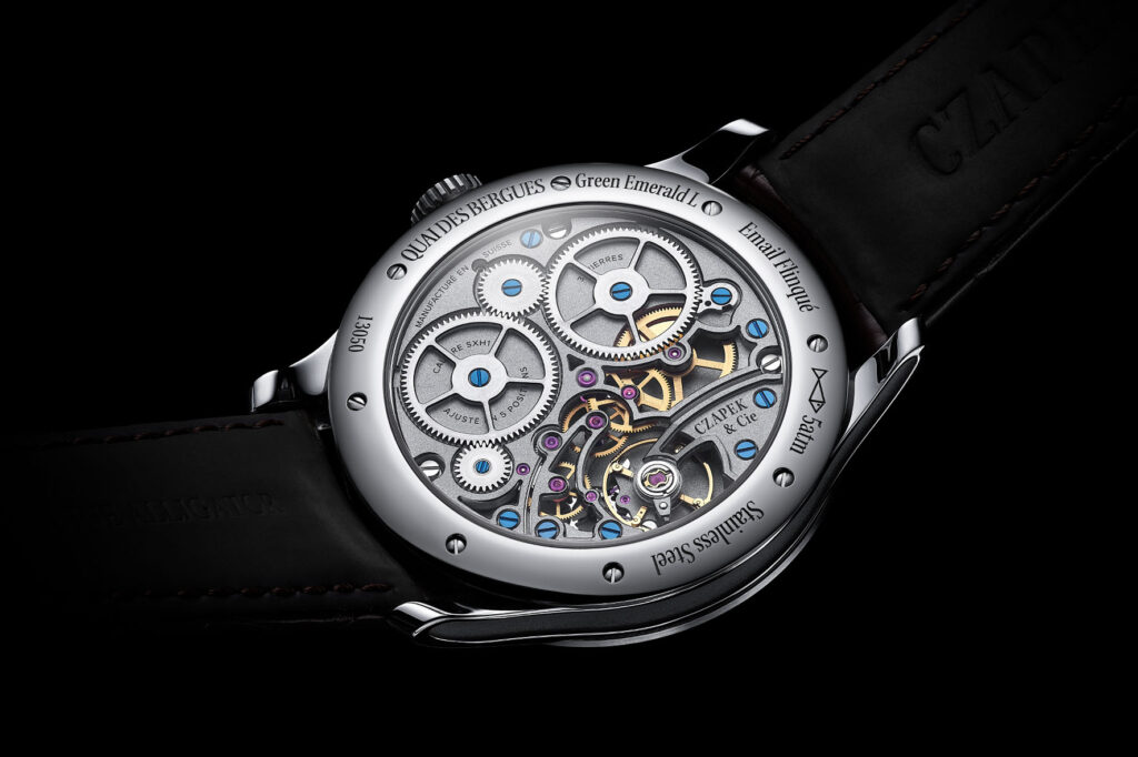 Le novità di questi modelli Quai des Bergues non si limitano tuttavia ai colori dei quadranti. Il calibro che li anima, l’SXH1 a carica manuale con riserva di marcia di 7 giorni, è stato delicatamente rivisitato. “L’anima dell’orologio non è stata alterata”, ci assicura Xavier de Roquemaurel, CEO di Czapek, “ma abbiamo analizzato nuovamente il movimento e identificato quelli che potremmo definire punti di inflessione evolutivi”.