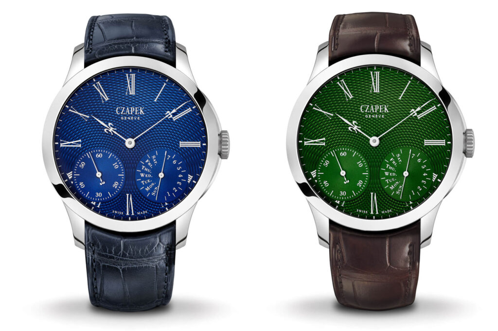 14 Settembre 2022A prima vista, i nuovi modelli Quai des Bergues possono sembrare familiari. Il motivo “Ricochet” e la tecnica dello smalto flinqué sono di ritorno, e sono ora disponibili in due colori, blu marino e verde intenso creati per Czapek dal suo partner Donzé Cadrans.