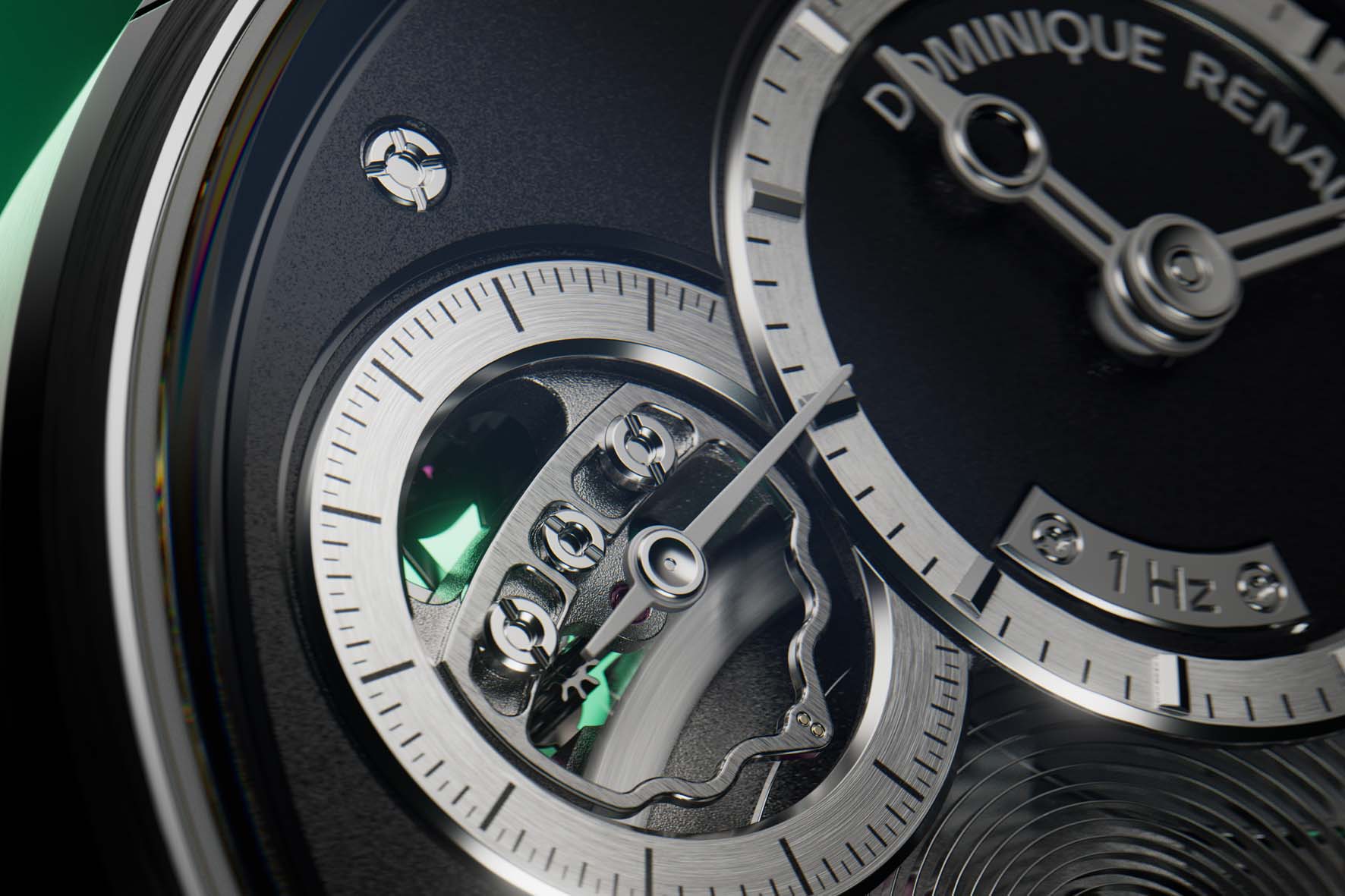 Uno degli aspetti più innovativi del Pulse60 è la completa riprogettazione dell’organo regolatore. Dominique Renaud supera uno dei limiti classici dell’orologeria, permettendo al bilanciere di lavorare con un’ampiezza superiore ai 360° senza incorrere nel fenomeno del “knocking”. In teoria, si arriva fino a circa 700°, un valore mai sfruttato in un orologio da polso tradizionale.