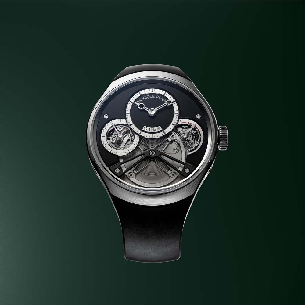 Il linguaggio del marchio Dominique Renaud è immediato e riconoscibile: minimalista, radicale, essenziale, ma allo stesso tempo profondamente tecnico. Qui ogni elemento è pensato per eliminare il superfluo e lasciare spazio a una lettura chiara della meccanica, creando un’estetica che appare quasi inevitabile, come se non potesse essere diversa da così.