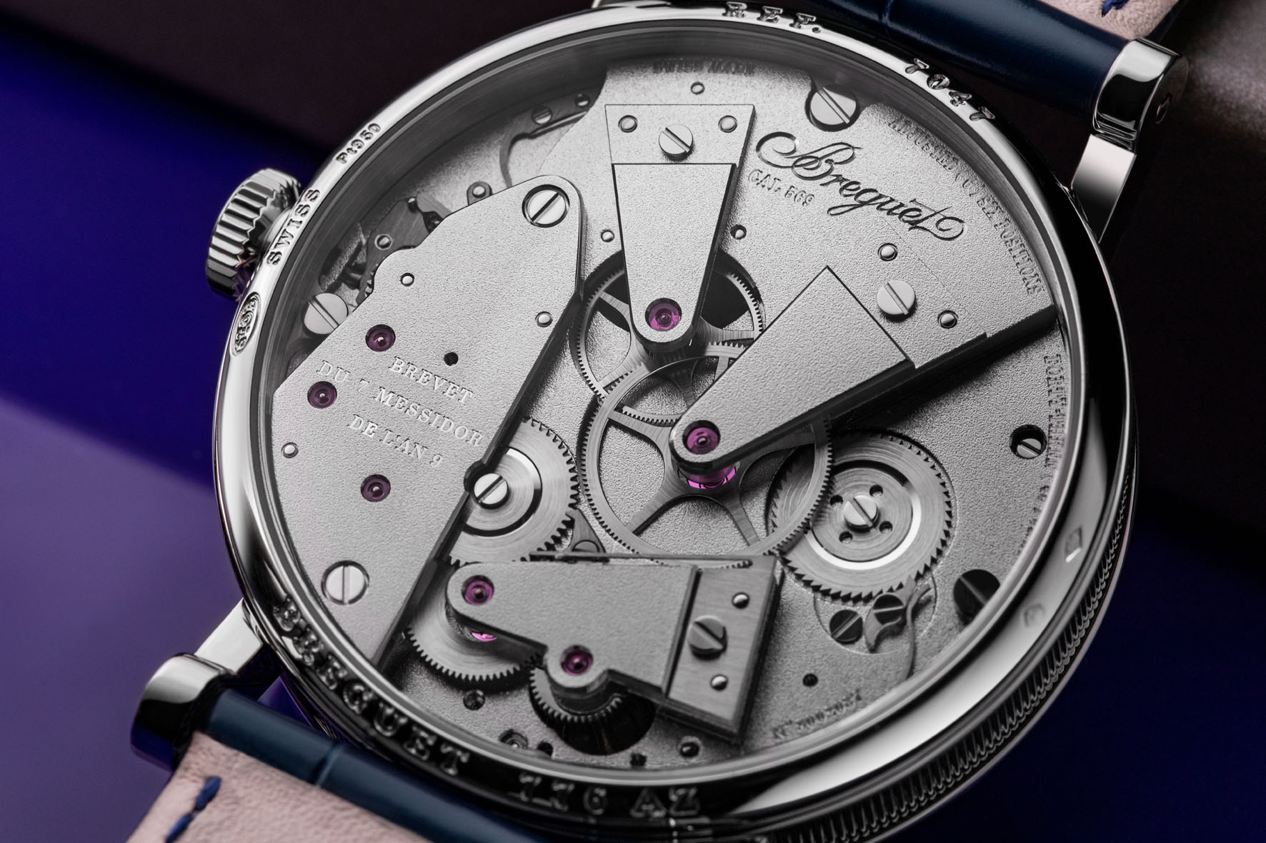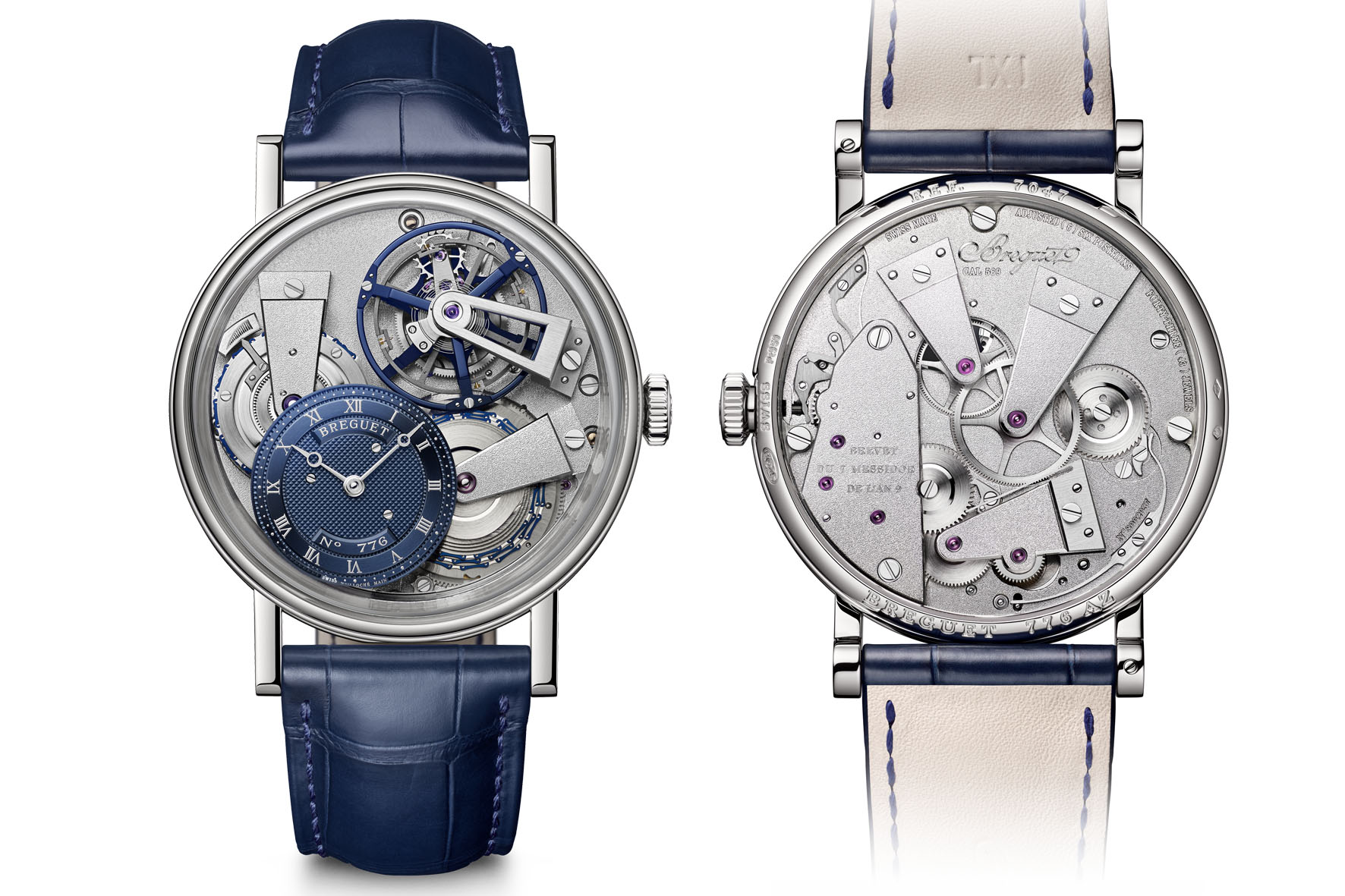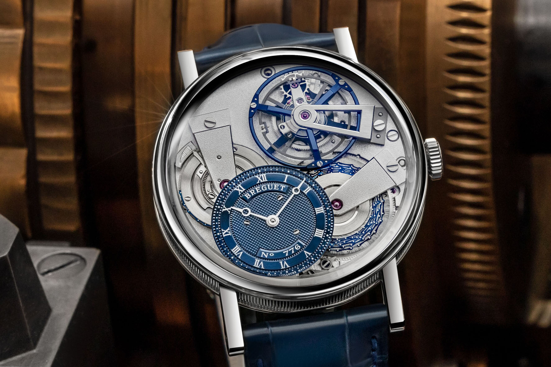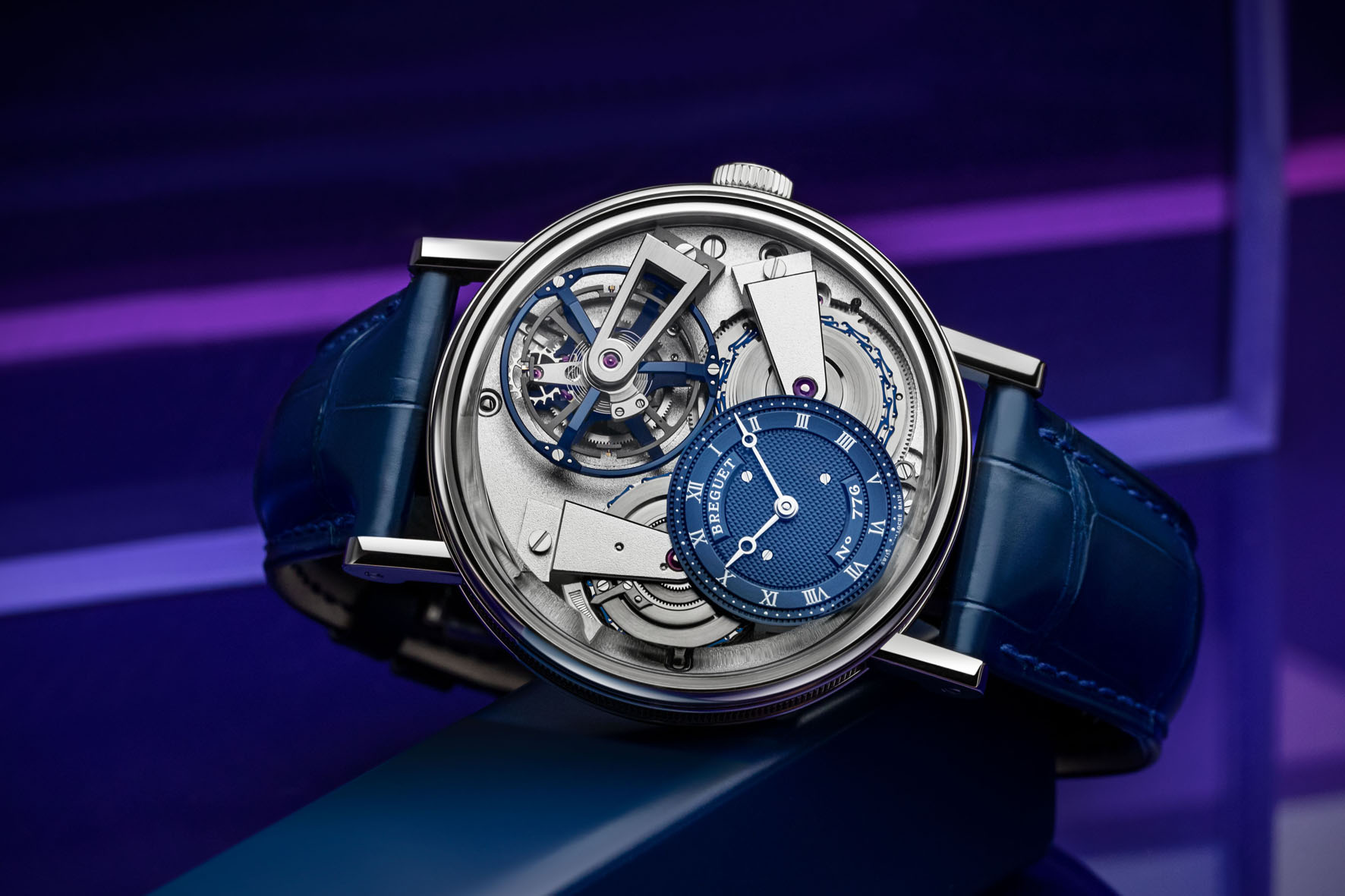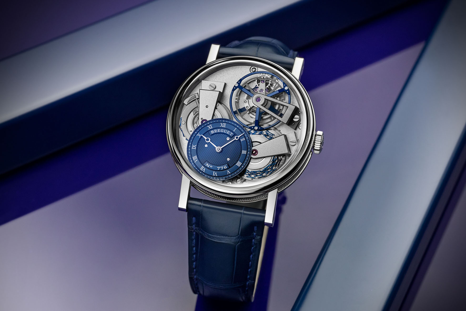 30 June 2022One year after the anniversary of the creation of the Tourbillon, Breguet unveils the new Tradition Tourbillon 7047 with a fusée-chain tourbillon mechanism sprinkled with touches of blue.