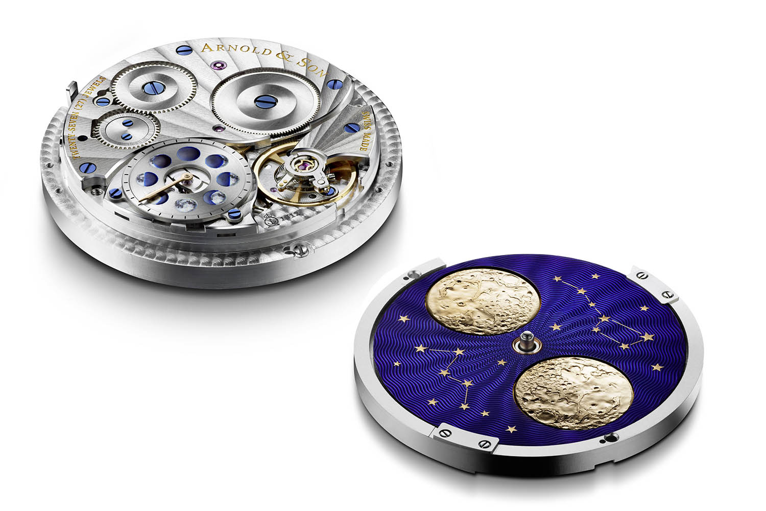 Le due parti del quadrante sono guilloché con decorazione soleil e due grandi lune tridimensionali. La cassa in oro rosa 18 carati ha un diametro di 42 mm e racchiude il movimento meccanico intergrato a carica manual A&S1512, completamente prodotto e rifinito nella manifattura Arnold & Son.