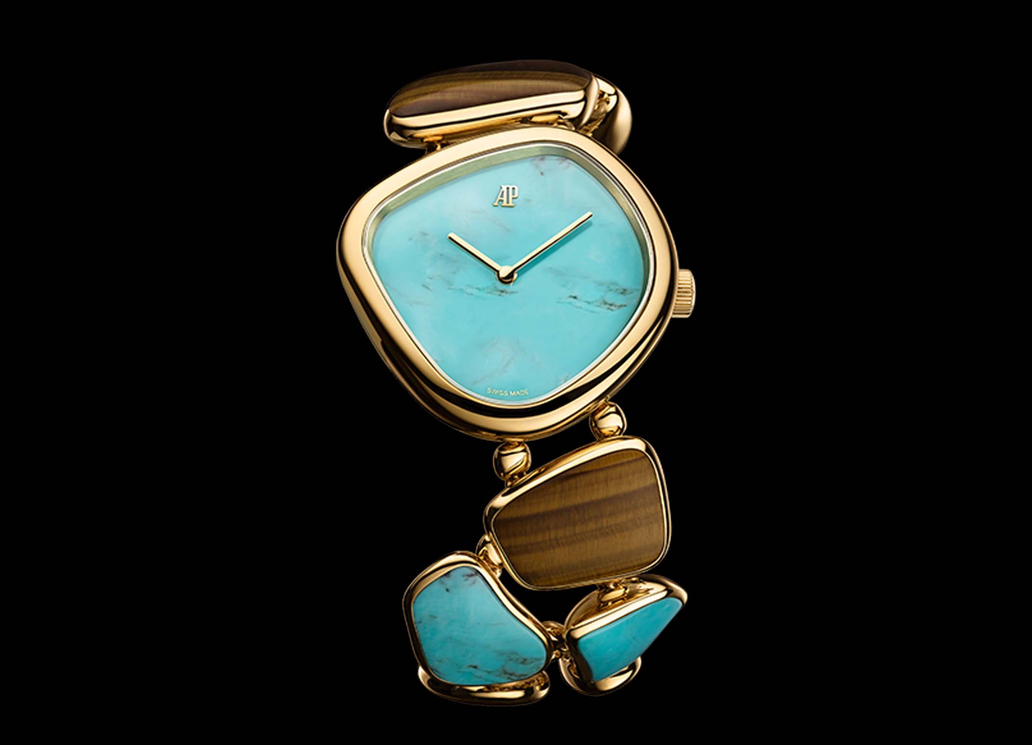 Like the case, the links of the bracelet have irregular shapes because they too are made from natural stones, which the stone cutters have shaped and the goldsmiths have set in gold, joining them together with small spherical gold links. Between artisans, designers, master watchmakers, master cutters and other experts, over 15 people are involved in the creation of the Établisseurs Galets. For this year, Audemars Piguet is planning five versions of the watch with different combinations of stones.