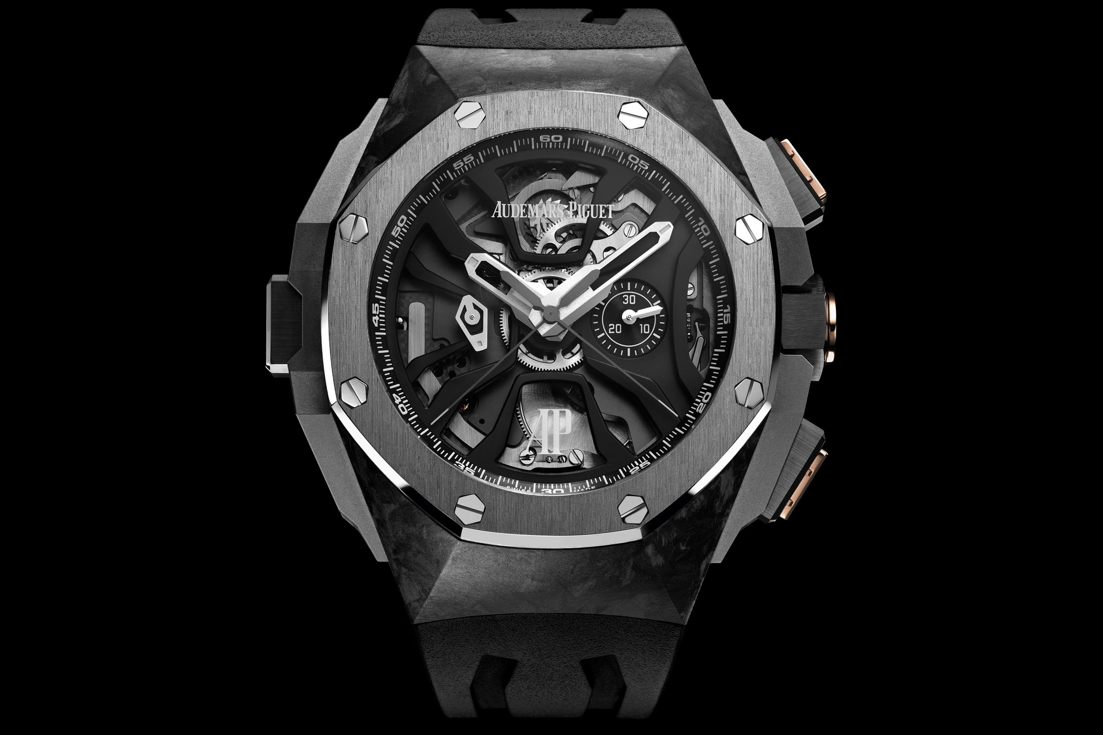 The Royal Oak Concept Laptimer Michael Schumacher is the first mechanical chronograph with alternating consecutive lap timing and flyback function.