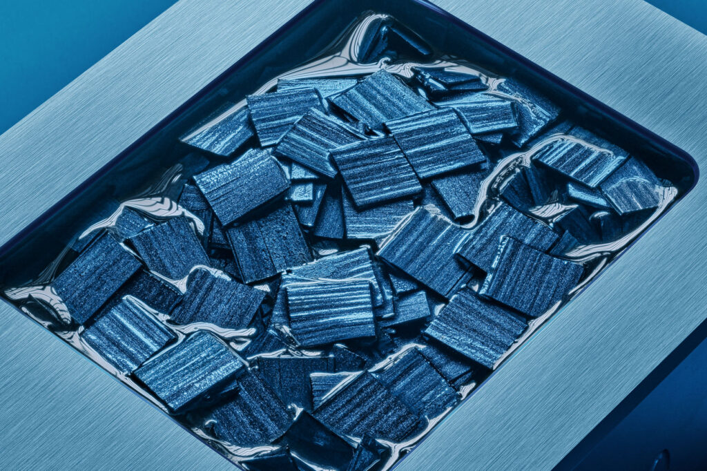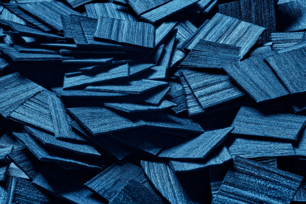 The manufacturing process involves numerous steps and great expertise. The carbon fibres are first cut into small pieces and coloured with pigments. A multitude of colours is possible, allowing for a wide range of creative developments. The coloured carbon pieces are then manually placed in a mould according to the intended design and completed with resin. This process is repeated to build several layers like a mille-feuille pastry. The content of the mould is then compressed to obtain a block free of air bubbles. Finally, the mixture is placed in an autoclave to be cured under pressure for about ten hours to reveal the properties of the resin and produce a carbon block that is then machined for six to eight hours to create the final component.