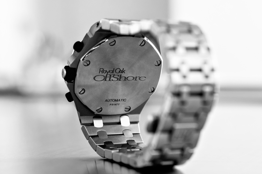 Today the Manufacture of Le Brassus celebrates the 25th anniversary of the Offshore with three new versions of his iconic sport watch. The first is a re-edition of the original Royal Oak Offshore; self-winding chronograph, steel case, blue dial “Petite Tapisserie”, blue pushers covered with rubber, and case back engraved with the Royal Oak Offshore logo in the center, and the word AUTOMATIC.