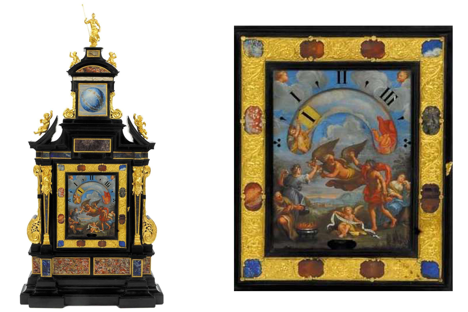 The Campani brothers replaced the hands, whose escapement was anything but silent, with some rotating discs that indicated the hours by marking a semicircle engraved with the minute scale, illuminated from behind by an oil lamp.