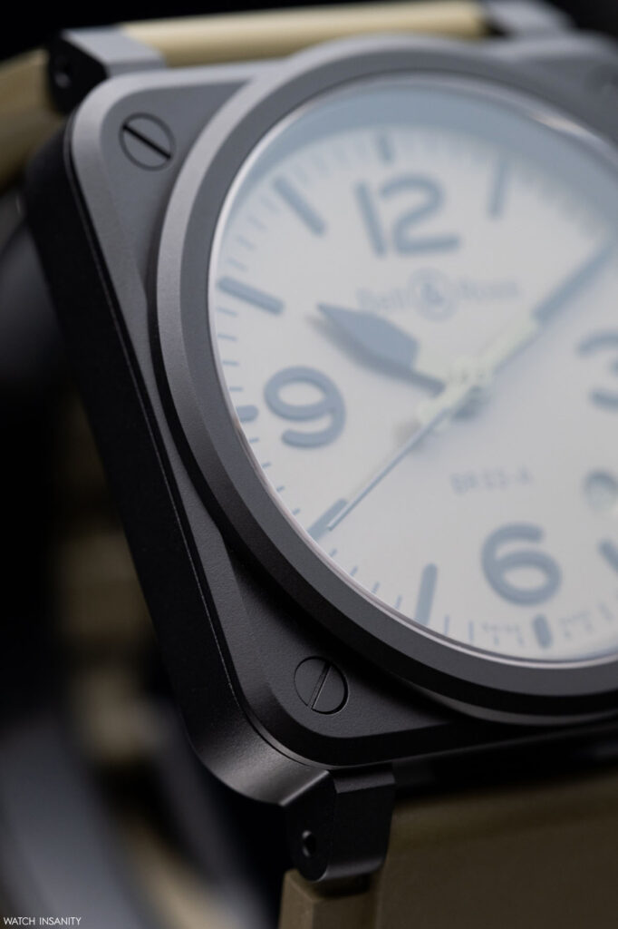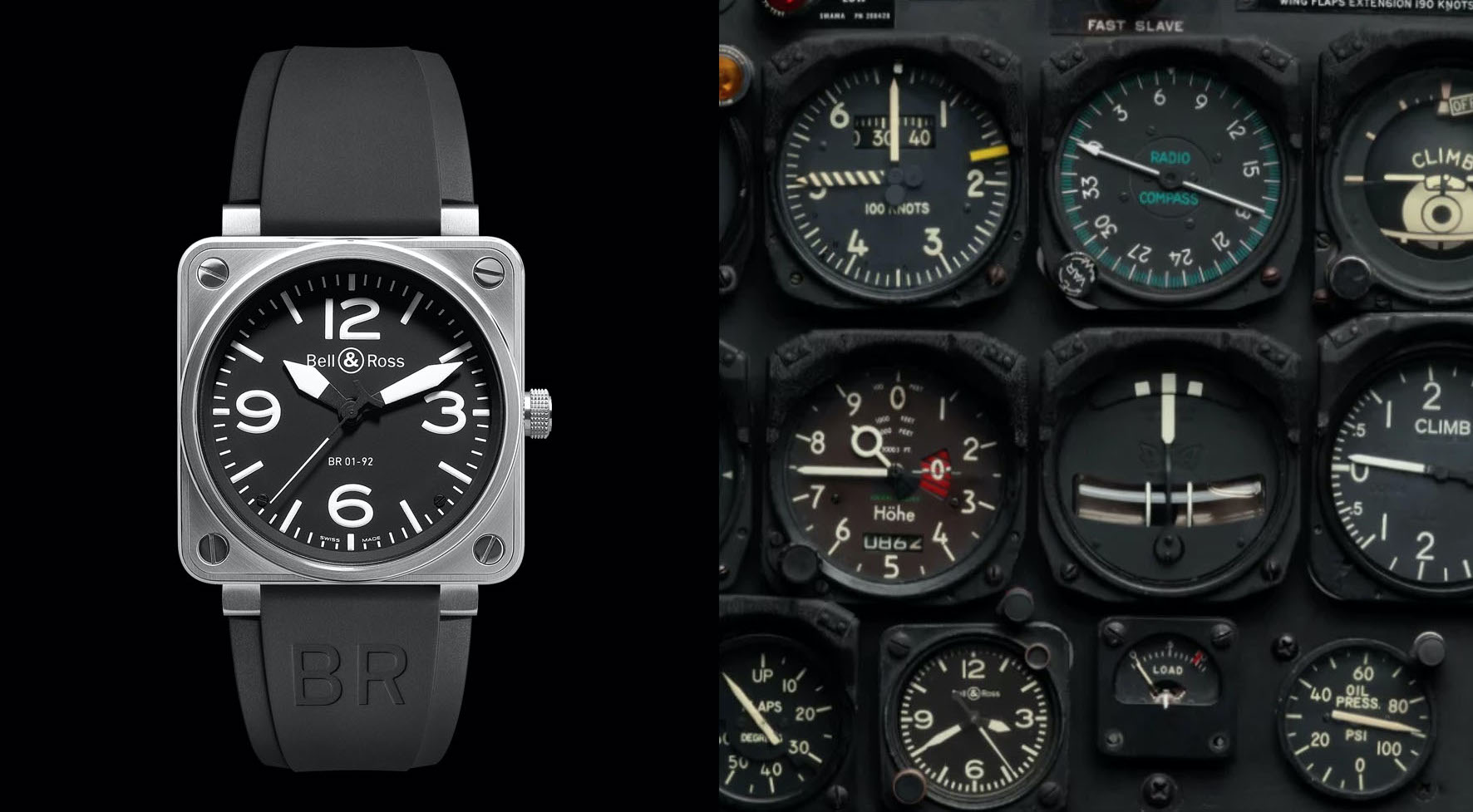 Well! Bell & Ross has reinterpreted the design of these instruments by bringing them from the instrument panels directly to our wrists without any exclusions: 4 screws at each corner of the case, a round dial inscribed in a 46mm square case, and a black dial color (which also recalls military echoes as it avoided reflections in the cockpit and offered great contrast with the radio/tritium markers and hands).