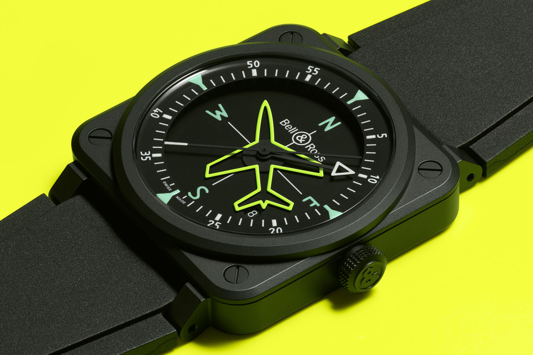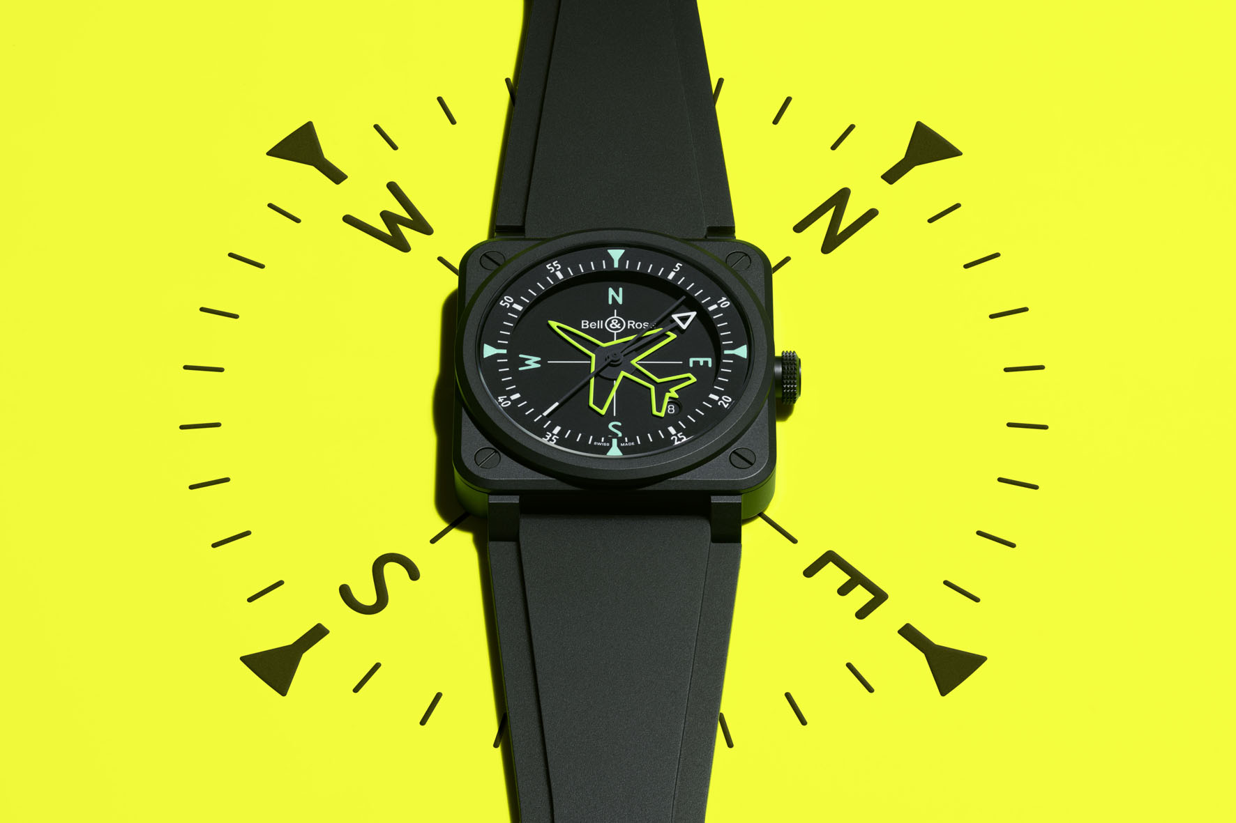 27 September 2023The fighter plane silhouette in the centre of the black dial leaves no room for doubt. With the new limited-edition BR 03 Gyrocompass, Bell&Ross pays tribute to one of its favourite worlds: aeronautics. The appearance of the watch is faithful to the kind of technical design used for a pilot’s dial at the helm of an aircraft, adopting the graphic codes for what is known to professionals as a course indicator. This guiding element on the dashboard is essential: at a single glance, the representation of an aircraft in the sky tells pilots their direction of travel, allowing the position to be realigned on a magnetic compass if necessary.