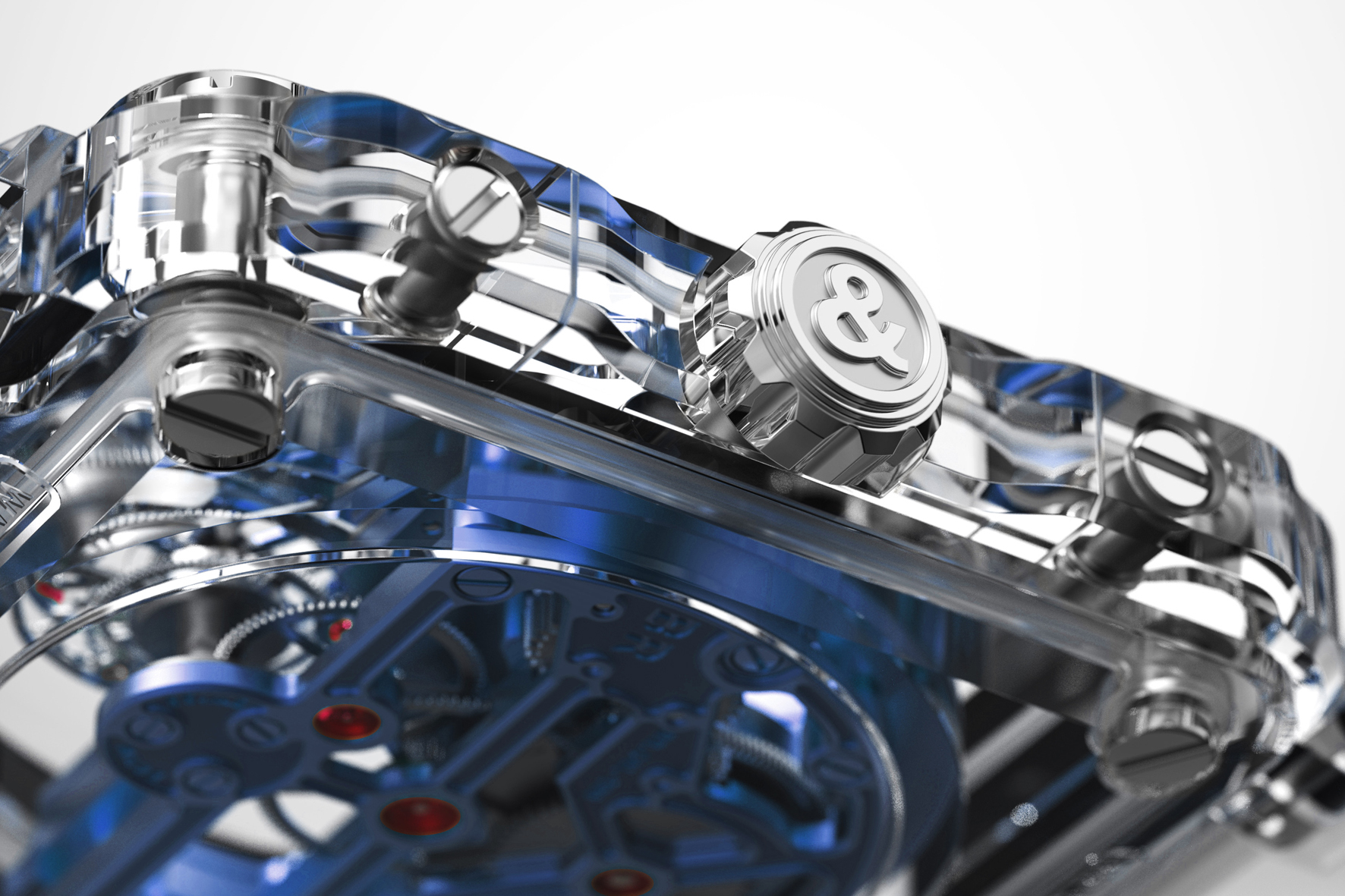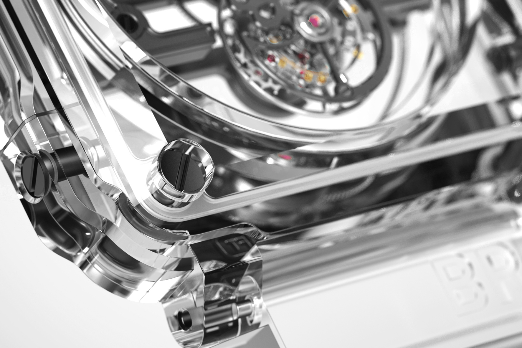 The second version offers an interpretation of the refinement and nobility of a precious metal. All the visible metal components of the movement are made from solid pink gold. Like a jewel enclosed in a glass case. €.400,000