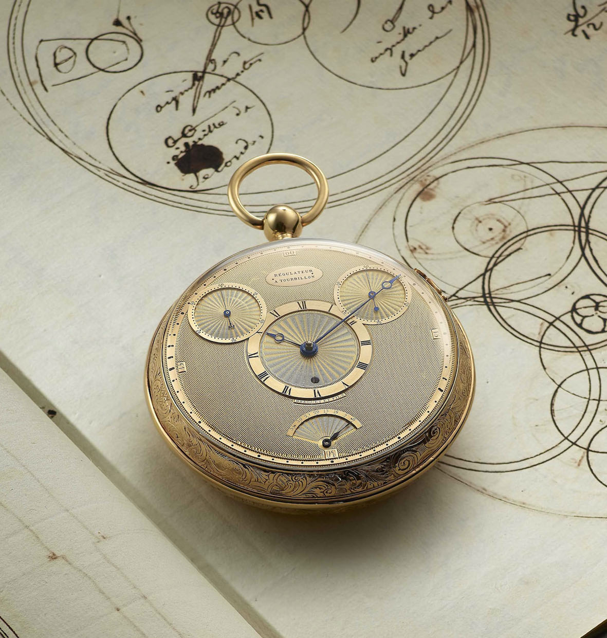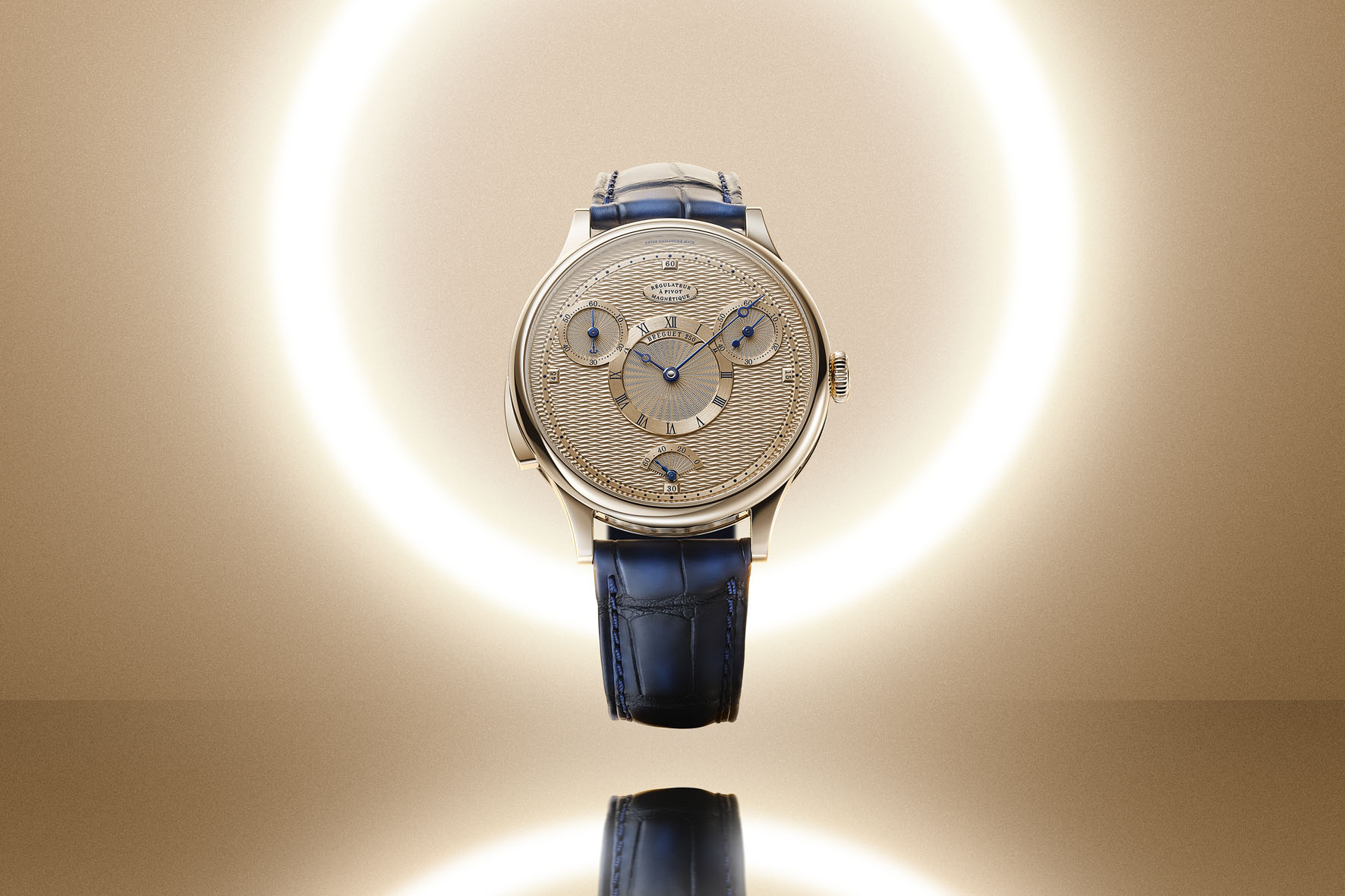 The dial is made of 18-carat Breguet gold and its aesthetics are inspired by an illustrious predecessor: Abraham-Louis Breguet’s watch no. 1176, one of the most famous pieces ever produced by the master, and one of the first with a four-minute tourbillon. The layout of the subdials includes central hours and minutes, a fan-shaped power reserve indicator at 6 o’clock, and two small seconds counters at 10 o’clock and 2 o’clock.