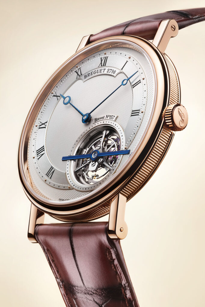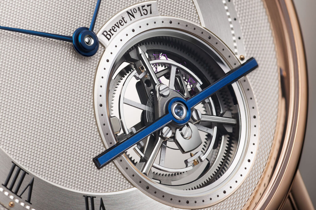 For this anniversary piece, Breguet has fitted its reference 5365 with a 60-second tourbillon, visible between 4 and 6 o’clock, with one of these axes showing the seconds. More eagle-eyed horologists will notice two special features. Firstly, the piece’s upper bridge is made of blued steel, which is something of an unusual finish for a tourbillon in the Classique collection. Secondly, the cartouche affixed above the tourbillon, bears the text “Brevet N°157”, a reference to the patent number awarded to Abraham-Louis Breguet for his invention a mere 220 years ago.