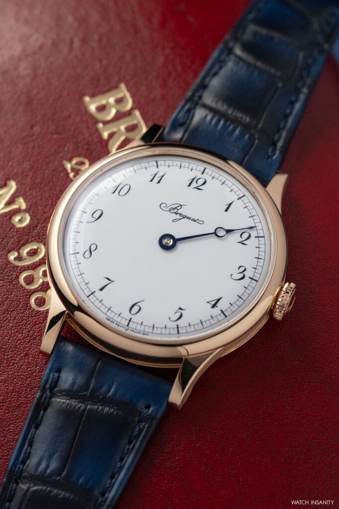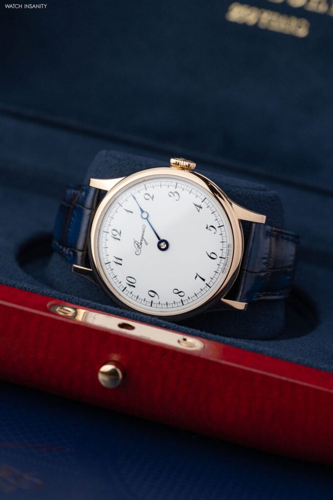 As in vintage boxes, the opening is push-button and the hinge is plated with Breguet gold. Gold that is also found in the engraving on the lid, with the inscription ‘BREGUET 250 YEARS’. A hint of the first Breguet logo, in the form of a coat of arms, adorns the underside. A navy blue alligator leather strap and a Breguet gold buckle complete the Classique Souscription 2025, which is on sale for €53,600.