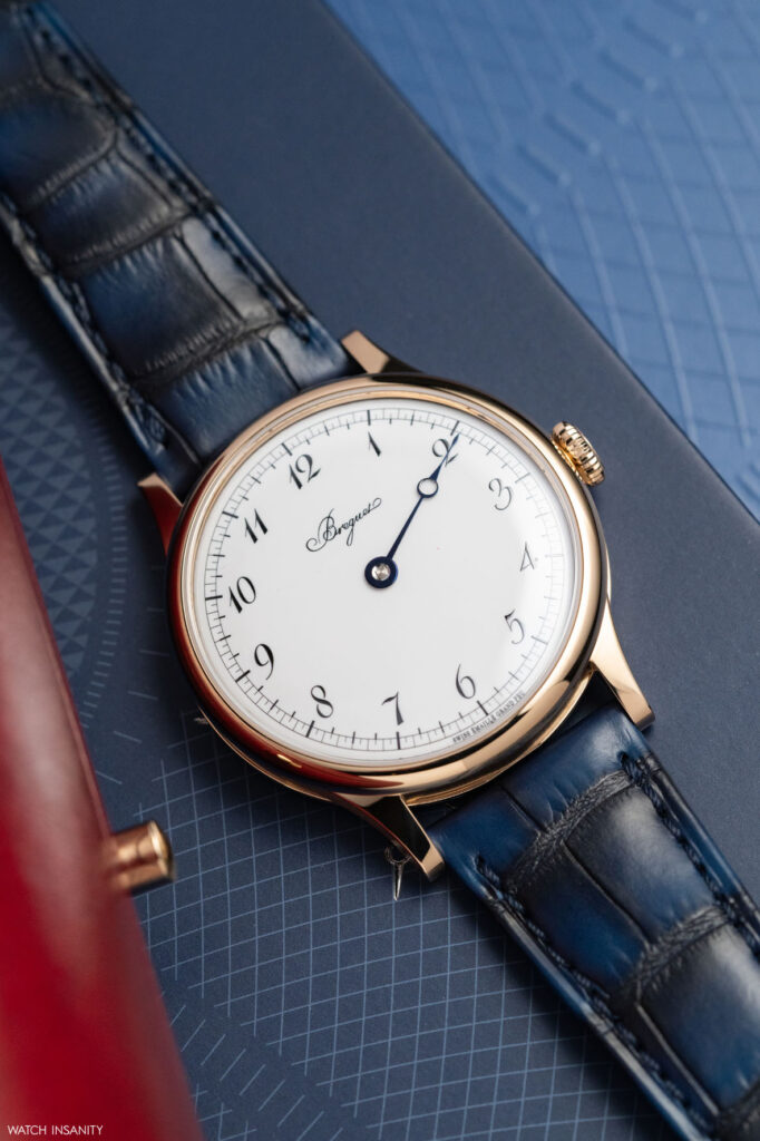 The real novelty, however, lies in the material. For the watch, the brand has in fact created ad hoc a new gold alloy, which it has called ‘Breguet gold‘. Specifically, Breguet gold, conceived and developed in the company’s workshops, is an 18-carat alloy – 75% of which is gold – enriched with silver, copper and palladium. It has a warm, slightly pinkish hue inspired by the gold used in the 18th century by watchmakers such as Abraham-Louis Breguet.