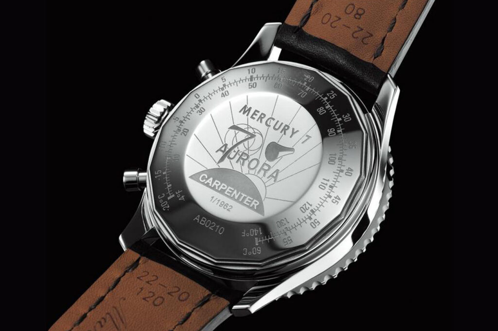 In 2012, 50 years after the Mercury-Atlas 7 mission, Breitling launched a limited edition in 1962 pieces with a 43 mm case and a Breitling Caliber 02 hand wound movement. The steel case back featured the engraving dedicated to the mission and a thermometric scale in Celsius and Fahrenheit.