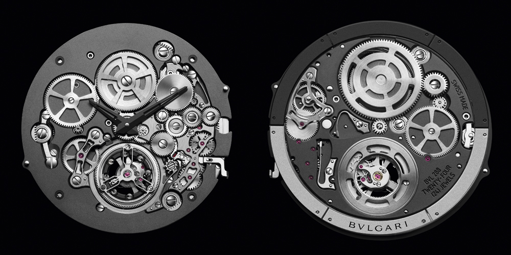 In the case of this new Tourbillon Automatic model, the Maison had to find technical solutions in the overall construction in order to achieve this degree of slenderness. Working on the basis of the Finissimo Tourbillon movement launched in 2014, this new development “Calibre BVL 288” handles automatic winding via an innovative and attractive peripheral oscillating weight positioned on the back of the movement. It is made of white gold and aluminium, two metals whose contrasting density enables the circular weight to oscillate in a particularly regular manner. The movement also incorporates a flying tourbillon equipped with a ballbearing system contributing to the reduced thickness.