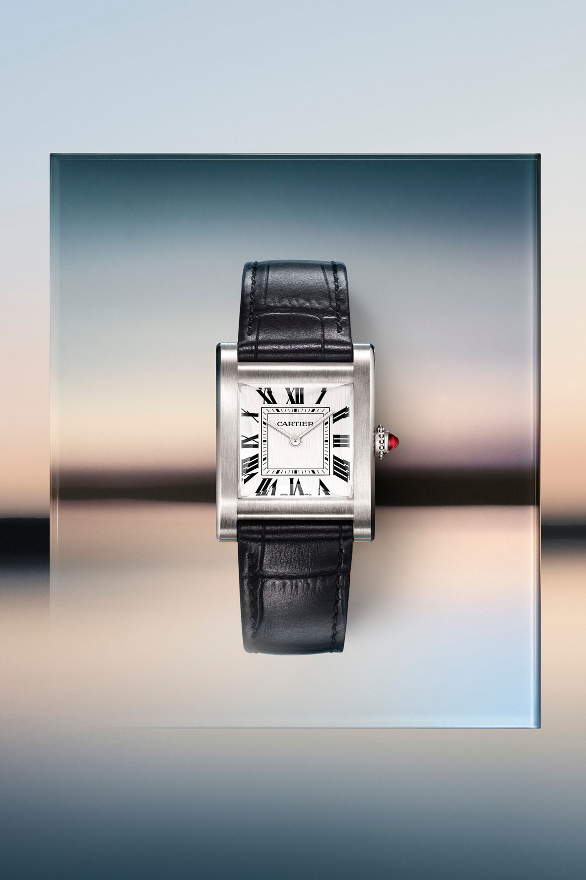 Hallmarks of the original Tank can be found throughout all these variations: blued hands, a cabochon on the winding crown and, on the simple Tank Normale, rail tracks and a secret signature – countless signs that this collector’s watch is right at home in Cartier Watchmaking.