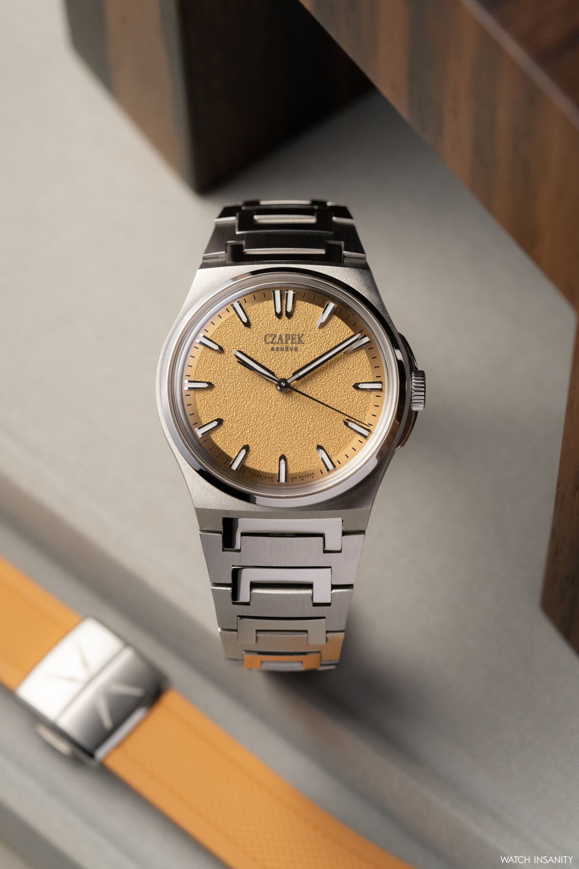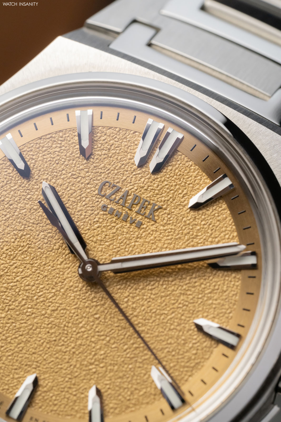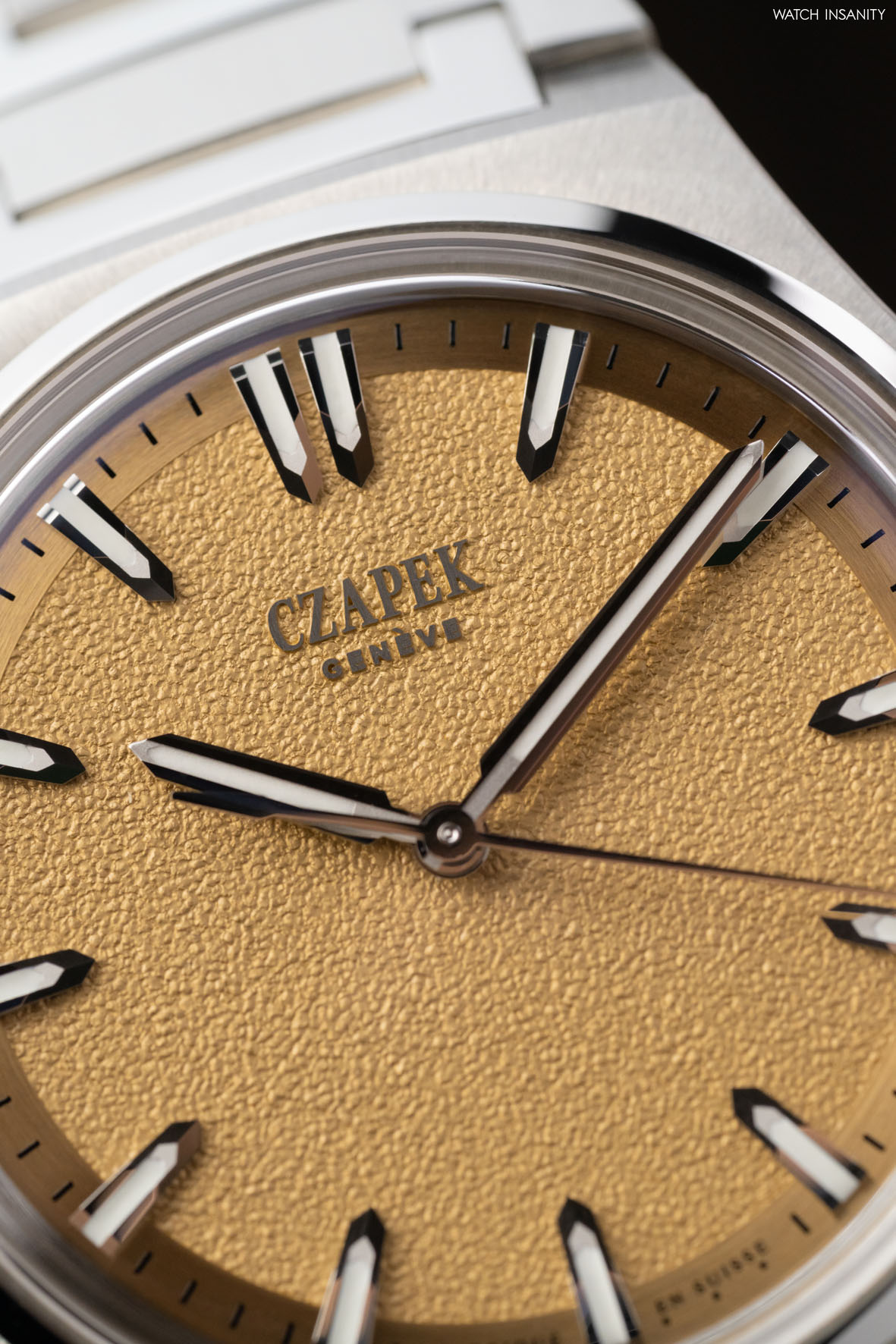 The dial is produced by Metalem, a prestigious Swiss dial manufacturer that is a long-standing partner of Czapek, and is characterised by a special matt-grained texture created by stamping in the centre and circular satin-finishing below the chapter ring. Both finishes have 4N gold plating, obtained by means of a galvanic bath.
