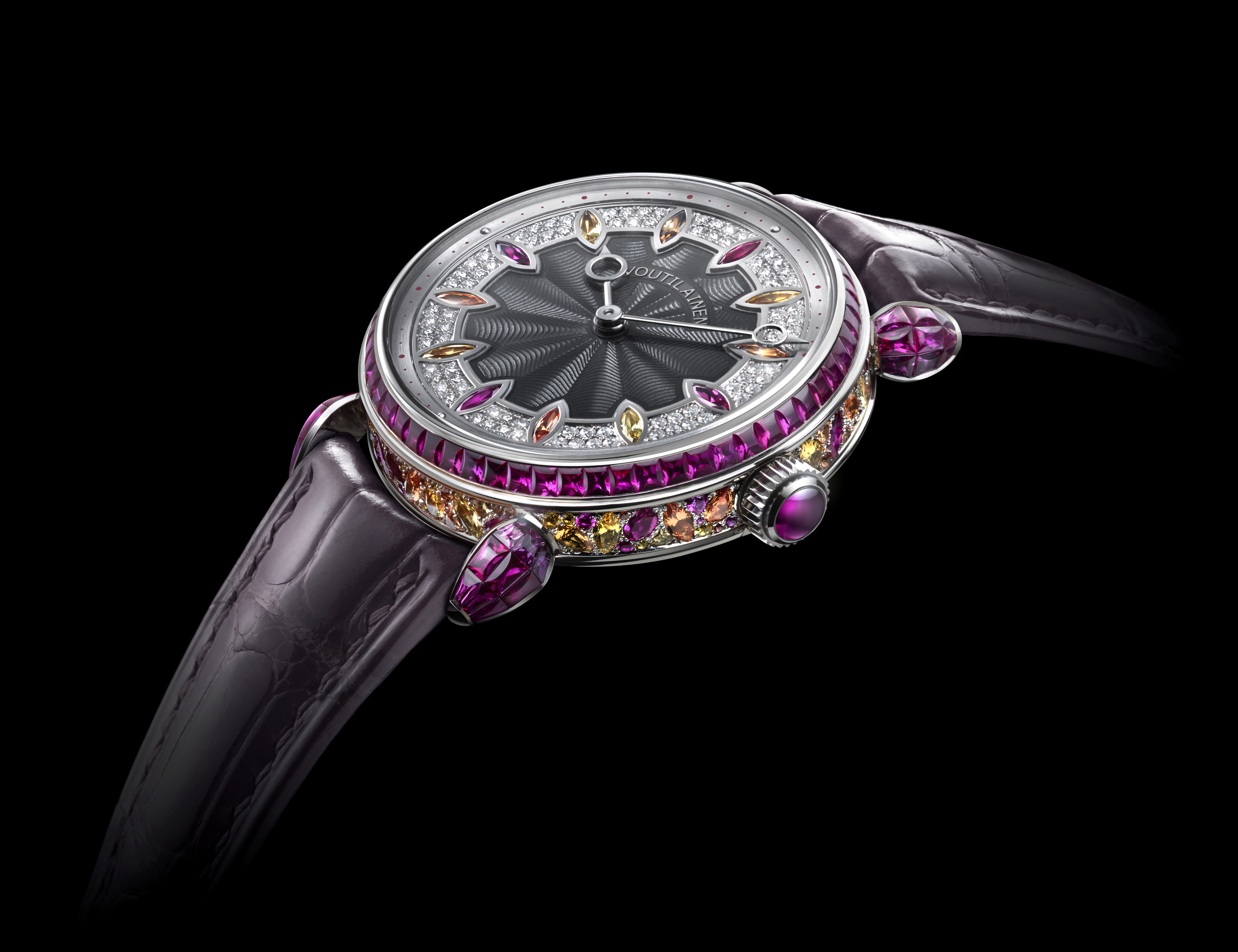 Kari Voutilainen is highlighting the Scintillante, which merges watchmaking traditions with the innovative character of a luxurious jewellery piece and features 423 gemstones in autumnal hues