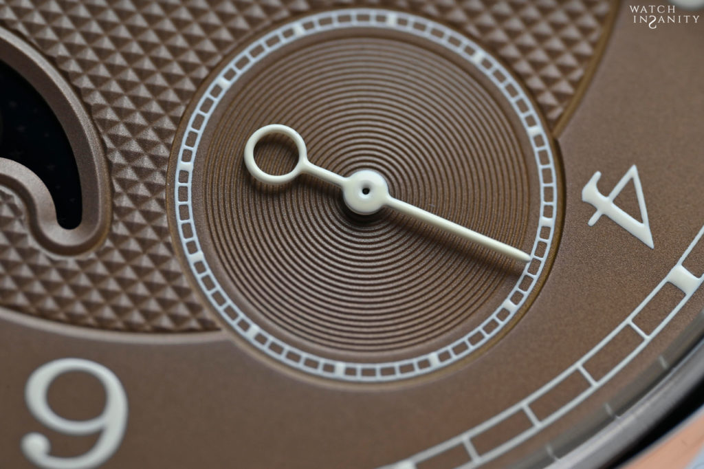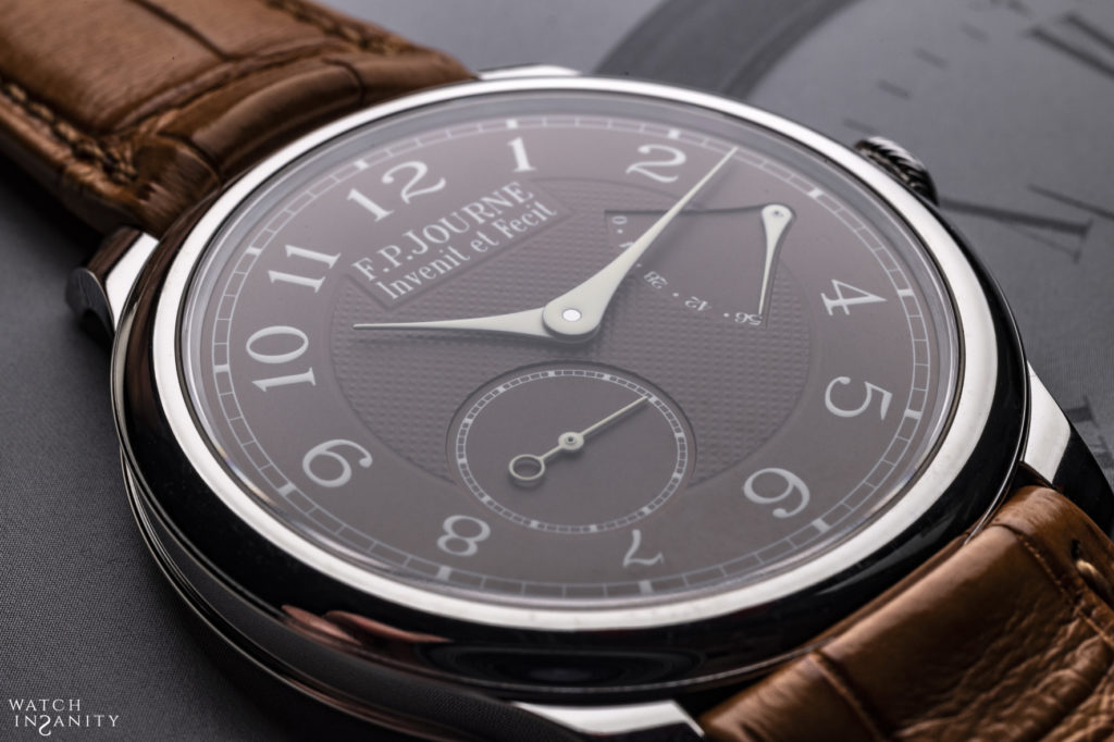 Dressed in Havana, the Automatique Lune thus finds a new, fascinating look in the version launched in 2019 to enrich the collection presented for the first time in 2007; that was one of the first F.P. Journe’s watch with centrally mounted hands, using the whole dial to display the hours and minutes, maximizing legibility with long teardrop-shaped blued steel hands contrasting against a stark silver guilloché dial. Also the Havana version of the Automatique Lune it is made with a 40 and 42 mm platinum or rose gold case and, personally, I find that the color of the dial gives the platinum version more charm. The ivory-colored hands add a touch of further elegance to the whole timepiece.