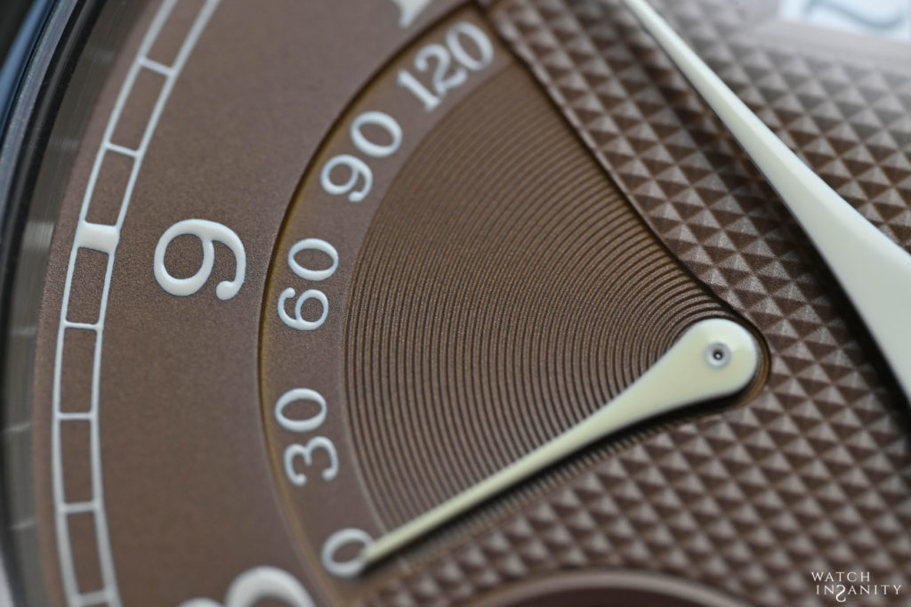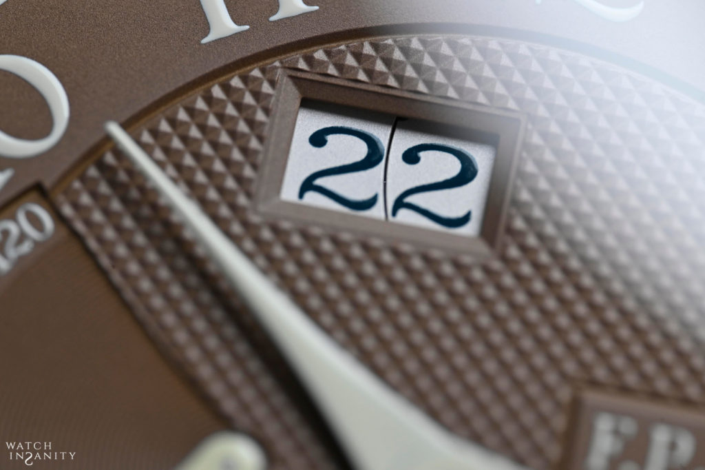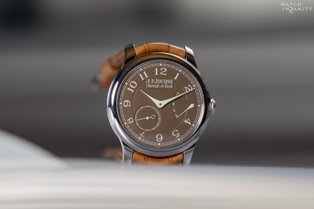 Like all works signed by F.P. Journe, even this color is not the result of chance or unpreparedness. It was developed by Journe’s own dial makers, Les Cadraniers de Genève, which only after several months of work and research have obtained the result they desired, as a color and material rendering. In fact, Havana brown was born from a combination of gold and ruthenium, But to get the colour just right required many adjustments to the formula.