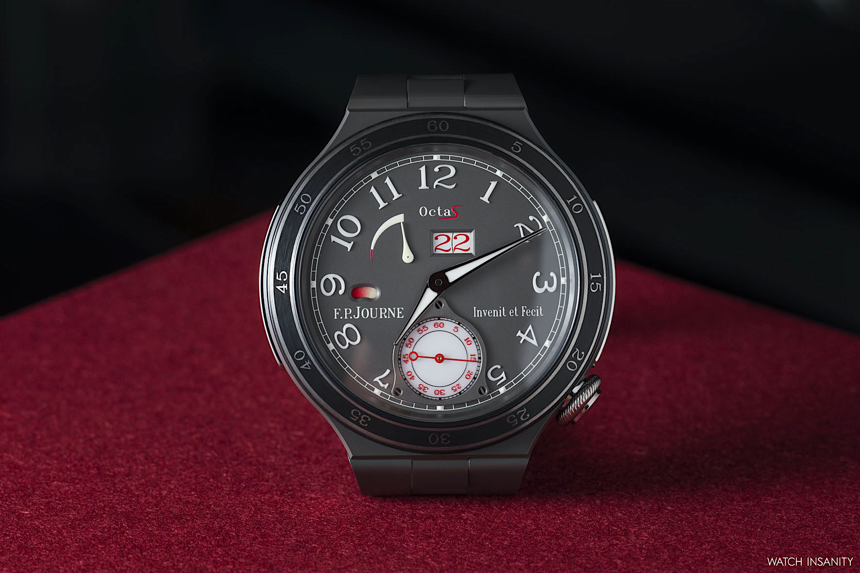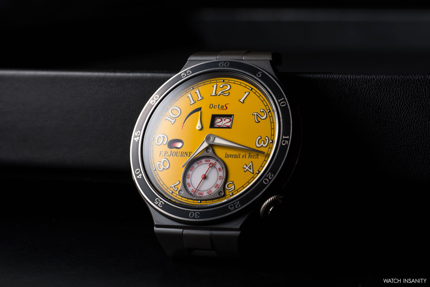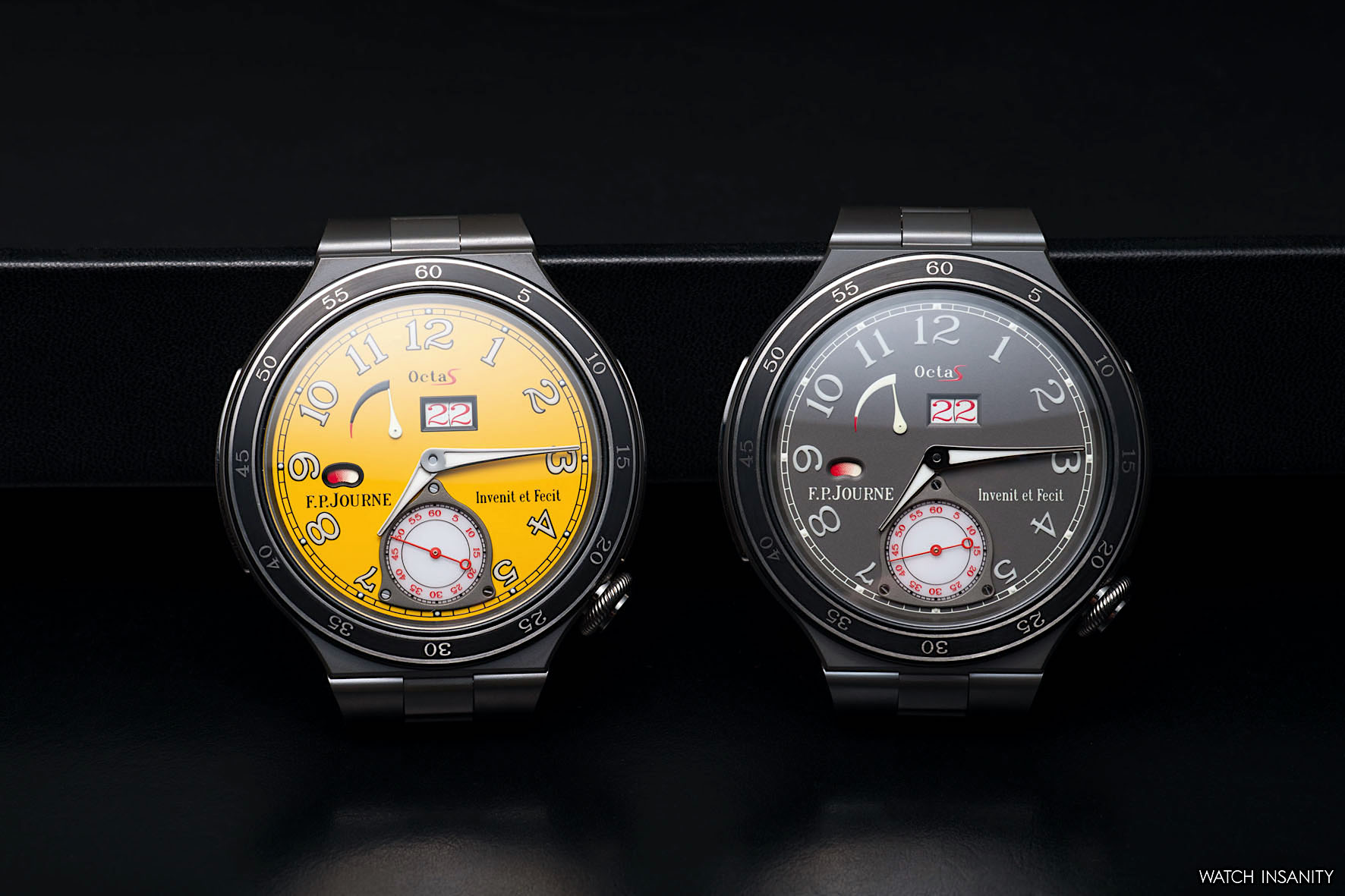 It’s clear from the shots that the Automatique Réserve also embodies one of the typical characteristics of F.P. Journe: the clear and rational readability of the information on the dial, be it yellow or anthracite. Starting from the big date: the size of the window has been increased to 4.7 x 2.6 mm, improving visibility. A big date that, ça va sans dire, jumps instantly.