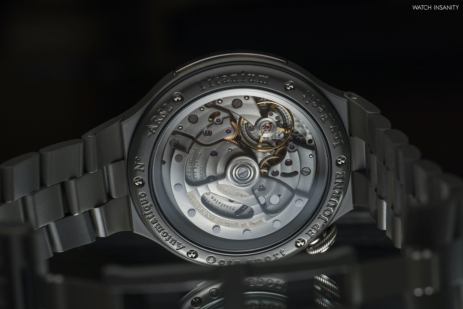 In addition to sportiness, the basic idea that drove the creation of this timepiece by F.P. Journe has been lightness, increasingly a hot topic for models and materials in the sports watch segment. The use of the most suitable materials to make the timepiece light and performing was the main focus in its development. And since in the industry, not just in watchmaking, lightness is synonymous with titanium and aluminum, these were the choices of the Maison.
