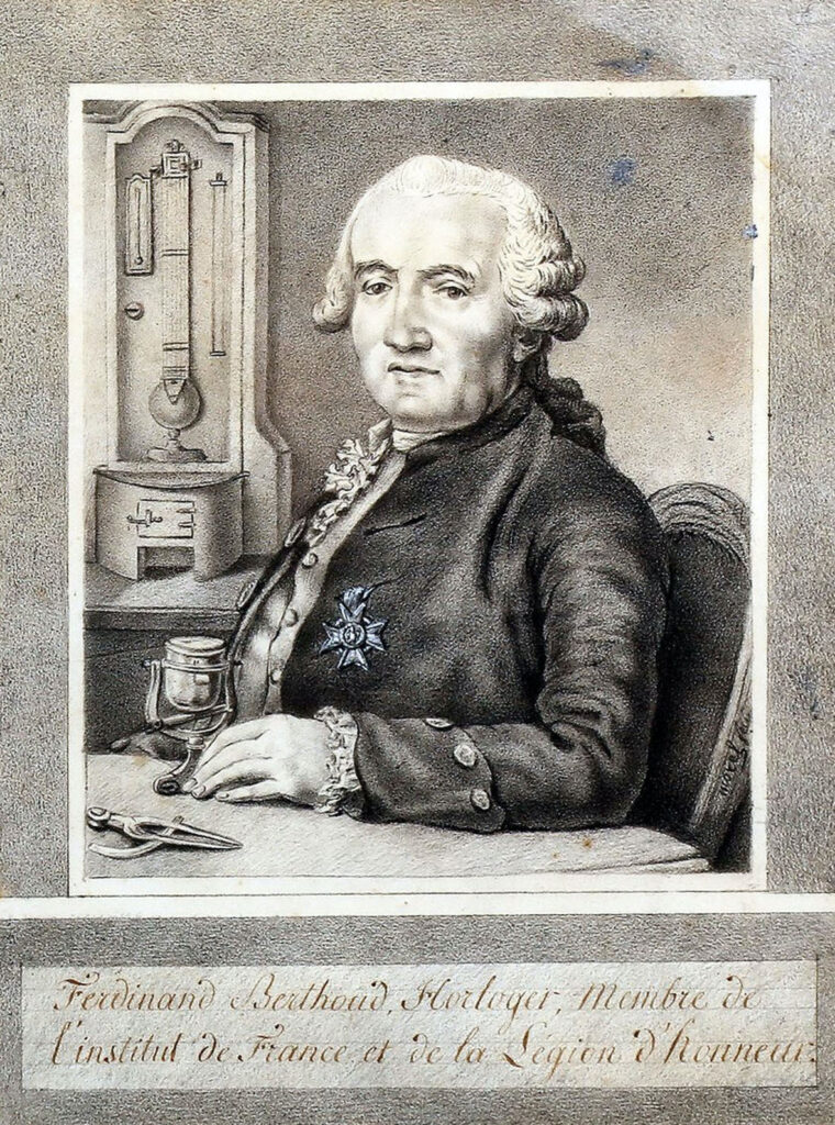 Ferdinand Berthoud was born in 1727 in Plancemont-sur-Couvet, not far from Neuchâtel, into a family of watchmakers. In 1741, in Couvet, he became an apprentice to his brother Jean-Henry, while receiving a solid scientific education. In 1745, he completed his training and obtained a watchmaking apprenticeship certificate. He moved to Paris for further training and worked for a while for the famous watchmaker Julien Le Roy, together with Pierre Le Roy, his master’s son, who would later become his rival. In 1753, he received the title of Master Watchmaker and enjoyed legendary fame during his lifetime, especially for his marine chronometers of exceptional precision, which earned him the position of watchmaker to the French king and navy, and enabled him to become an ‘associate foreign member’ of the Royal Society in London.