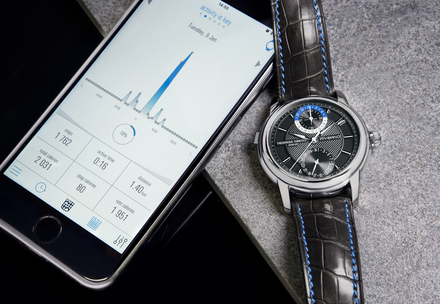 28 May 2018Frederique Constant combines three unique technologies ever in Swiss watchmaking: Manufacture, smart watch functions and caliber analytics. Hence the 3.0, the Frederique Constant Hybrid Manufacture.