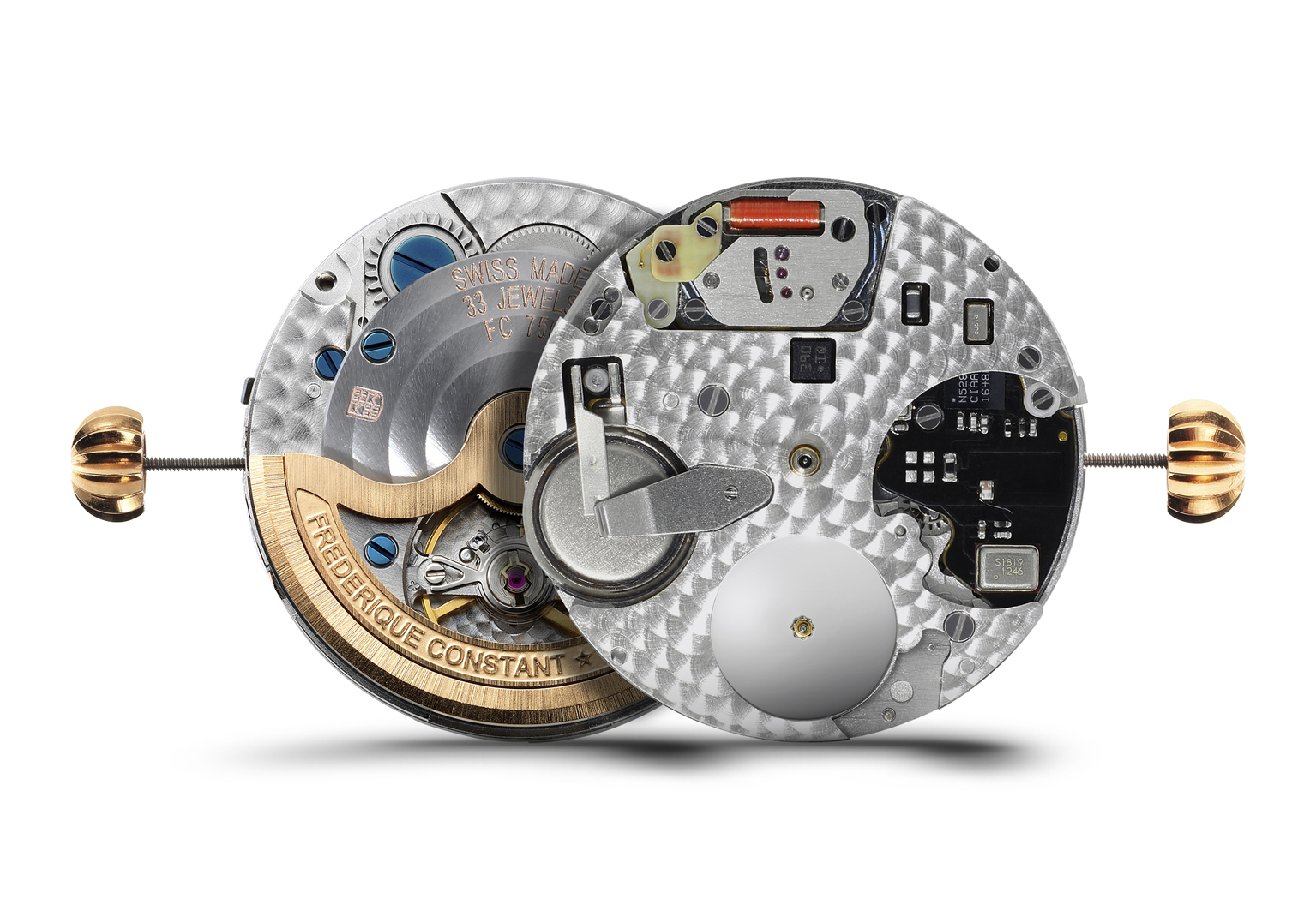 The FC-750 Hybrid Manufacture caliber is a revolutionary new caliber combining mechanical and electronical components.