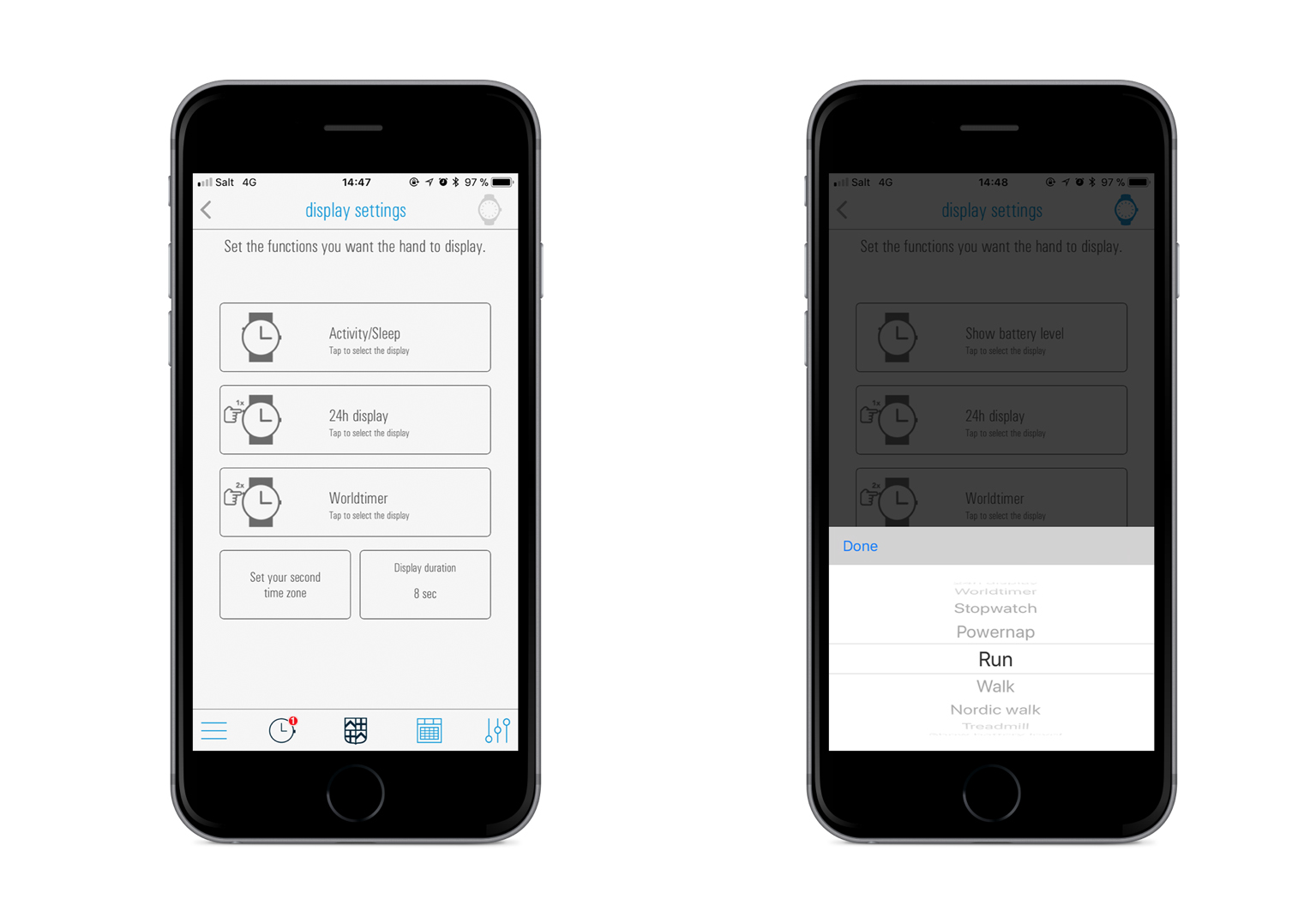 Inside the caliber, we integrated our proprietary Caliber Analytics functionality, an Algorithm to measure Rate, Amplitude and Beat error. Results are communicated to the Hybrid App via Bluetooth and can be seen in the form of graphs over time.